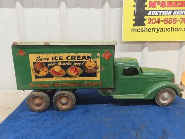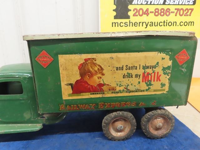Buddy L' Railway Express Pressed Metal Delivery Truck 22"x 9" x 6.5"