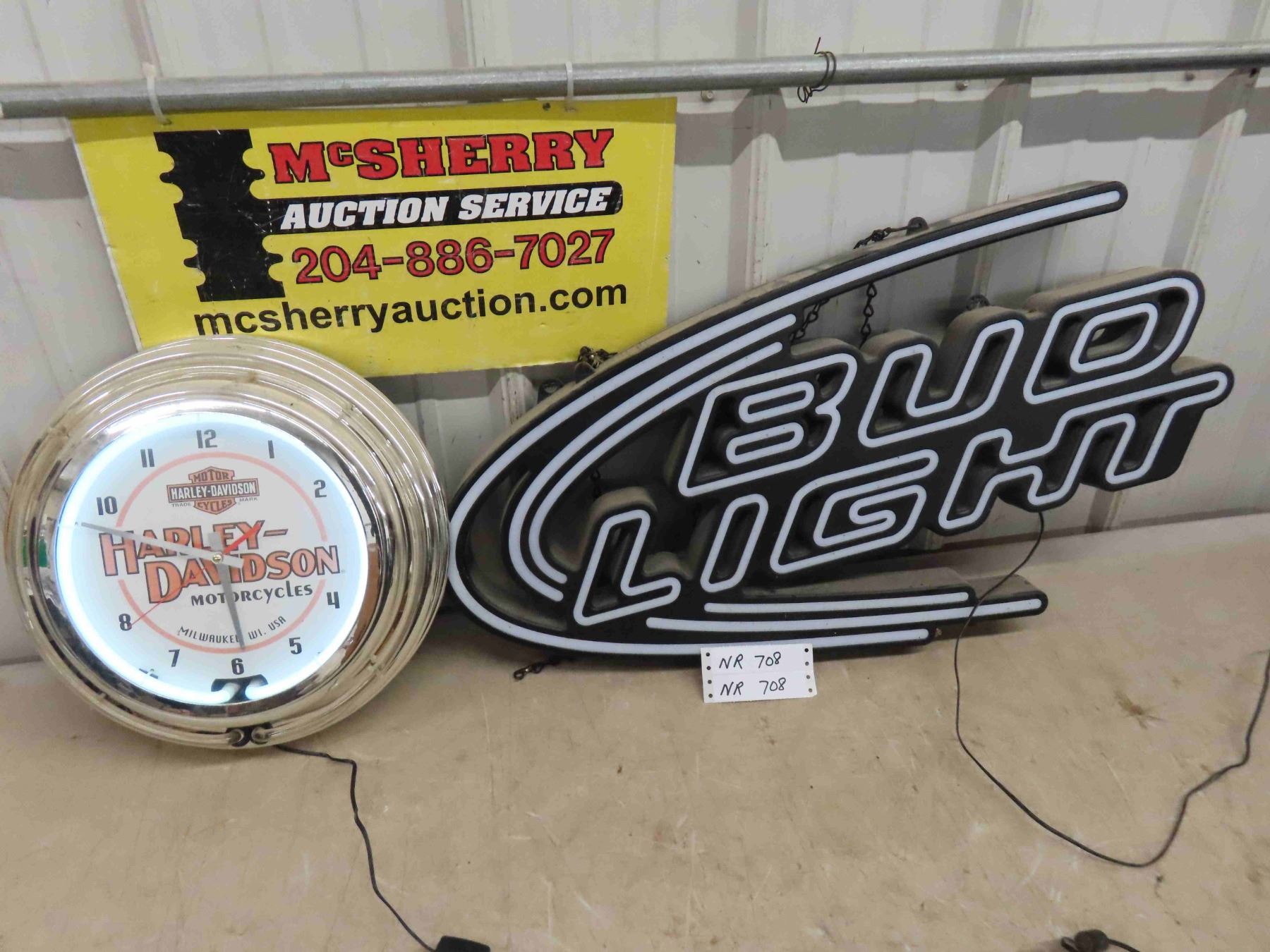 Budlight Sign 31'' x 18'' (Flashes) , Harley Davidson Neon Clock , Interior