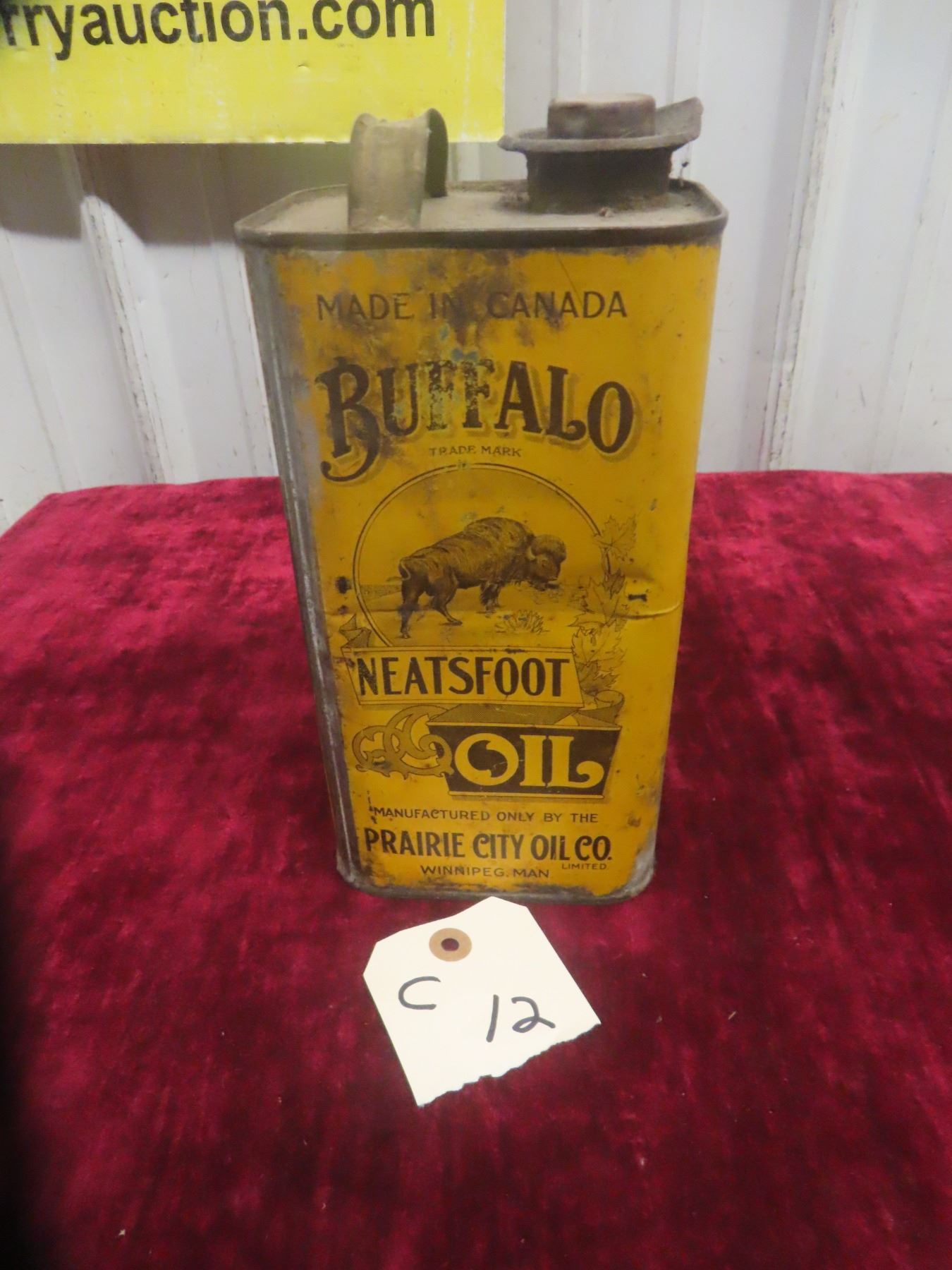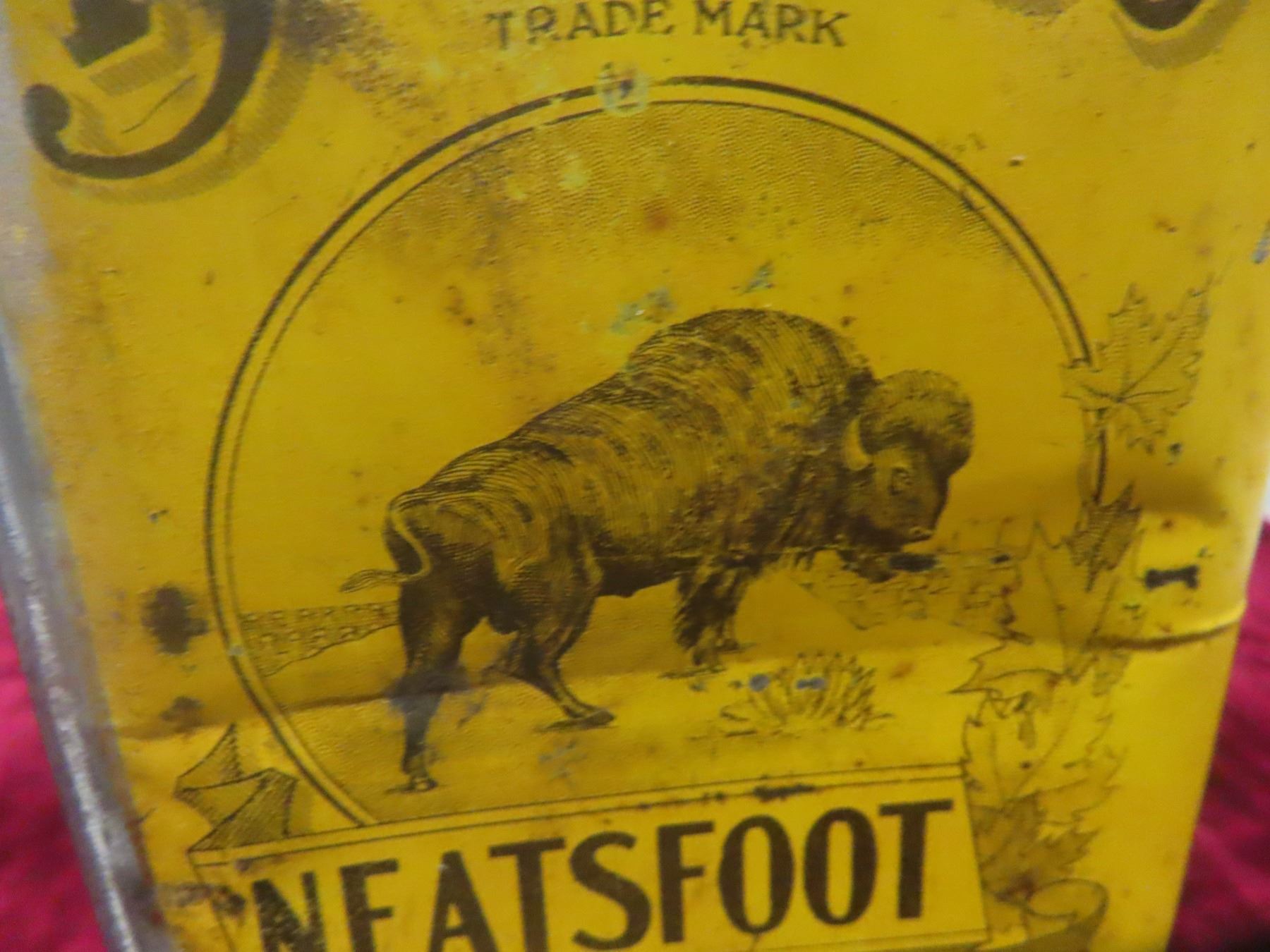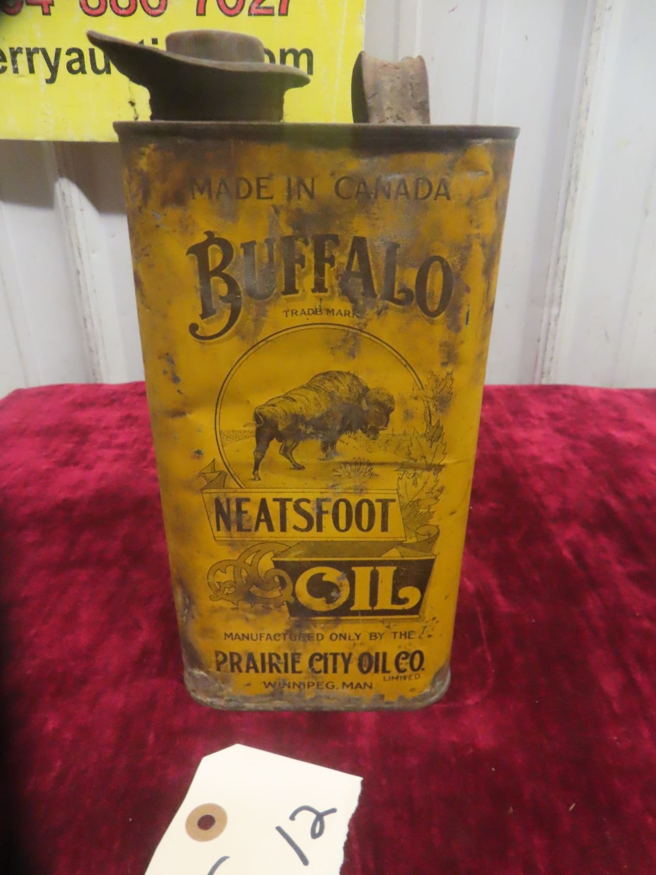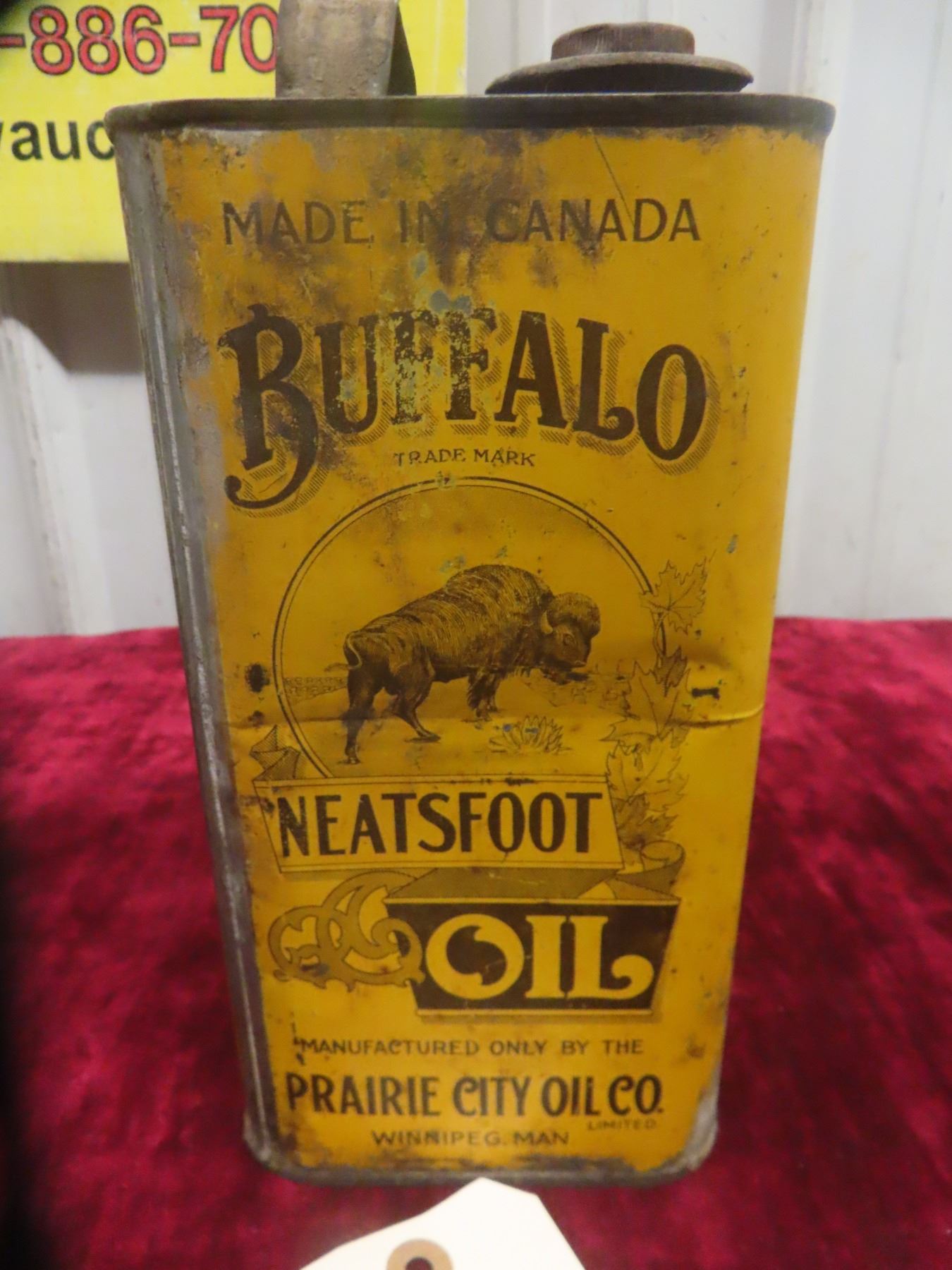Buffalo Neatsfoot Oil Can, Prairie City Oil Co. 8 3/4"x 5 "x4 "