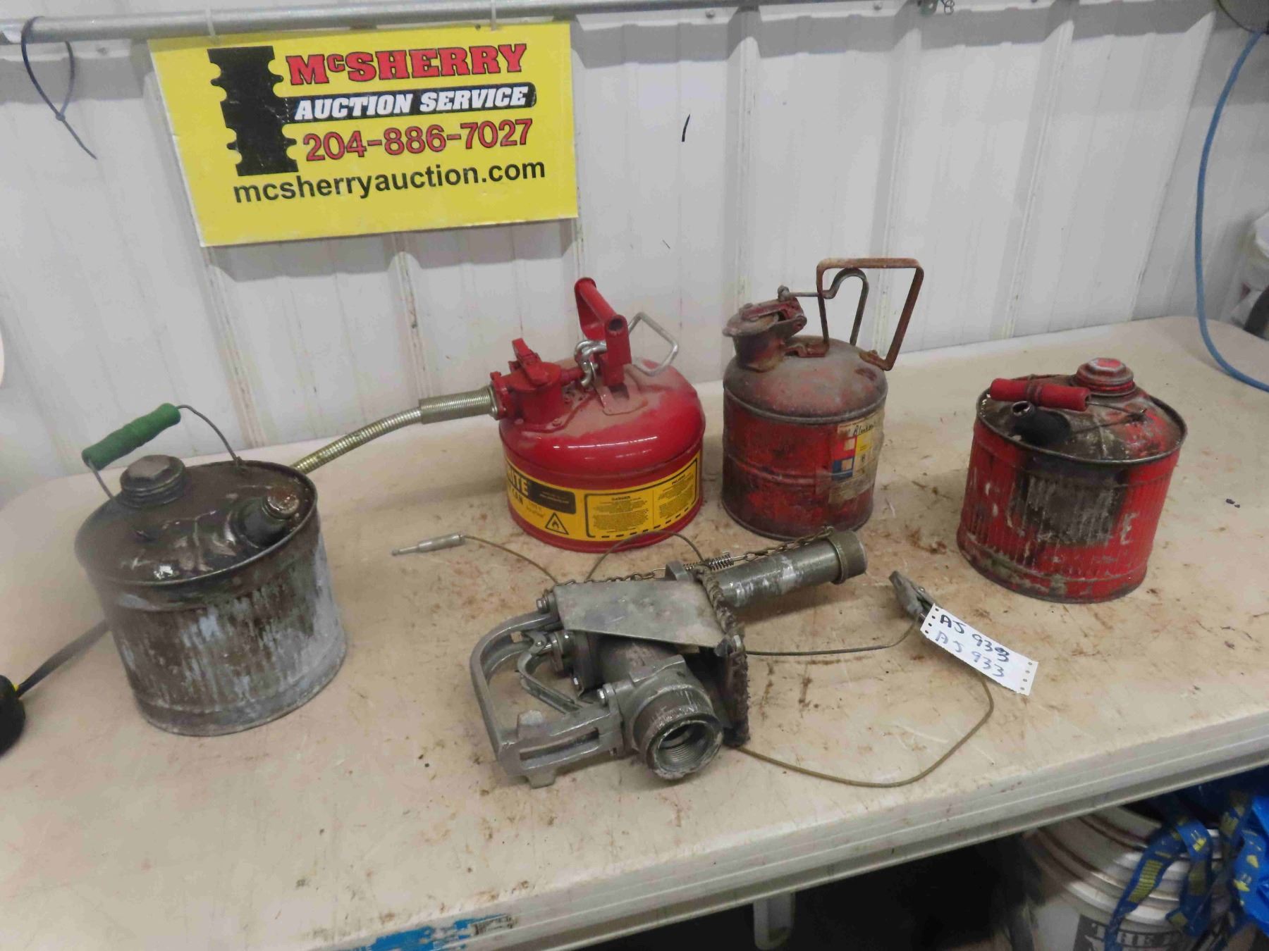 Bulk Fuel Nozzle , 2 Explosion Proof Gas Cans, 2 Metal Gas Cans