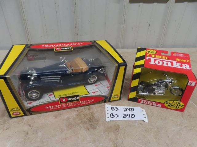 Burage 1/20 Special Edition 1936 Mercedes Benz Die Cast Car & Tonka 1/18 Scale Motorcycle
