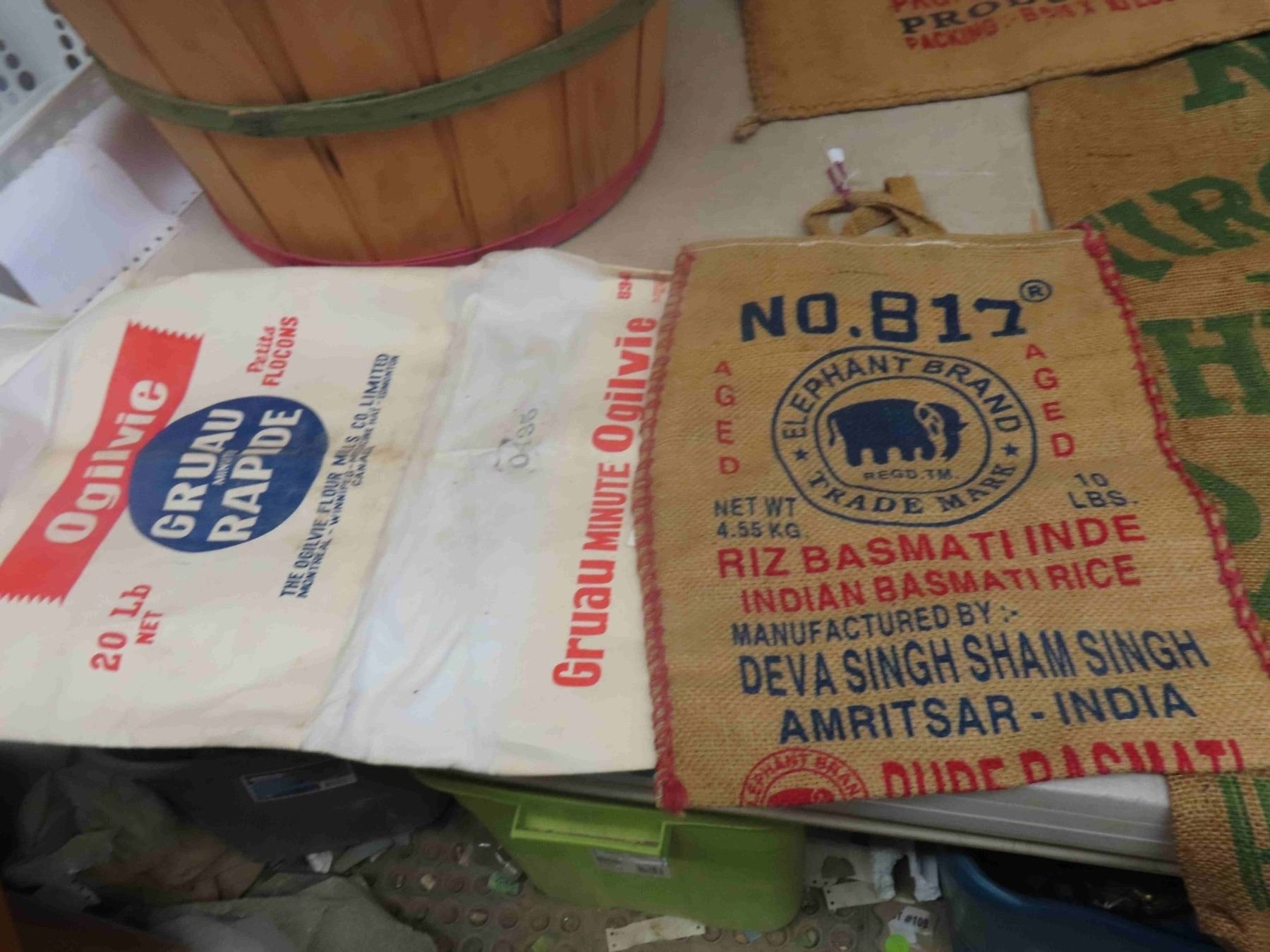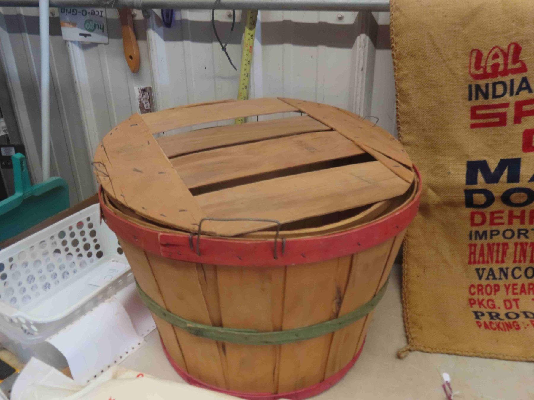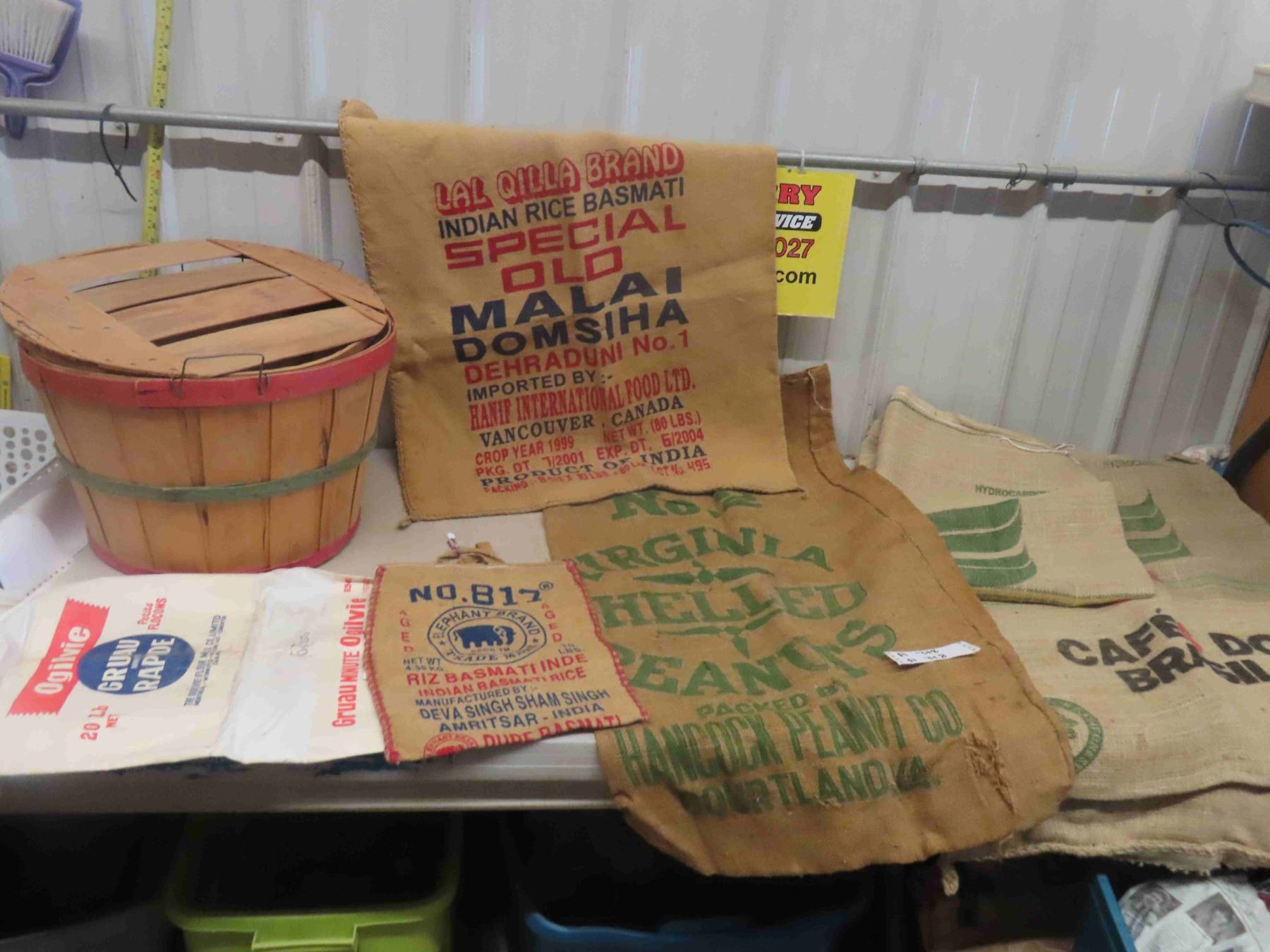 Bushell Basket with Lid, Guney Sacks with Advertising