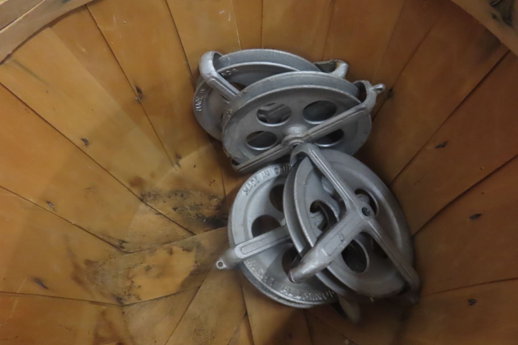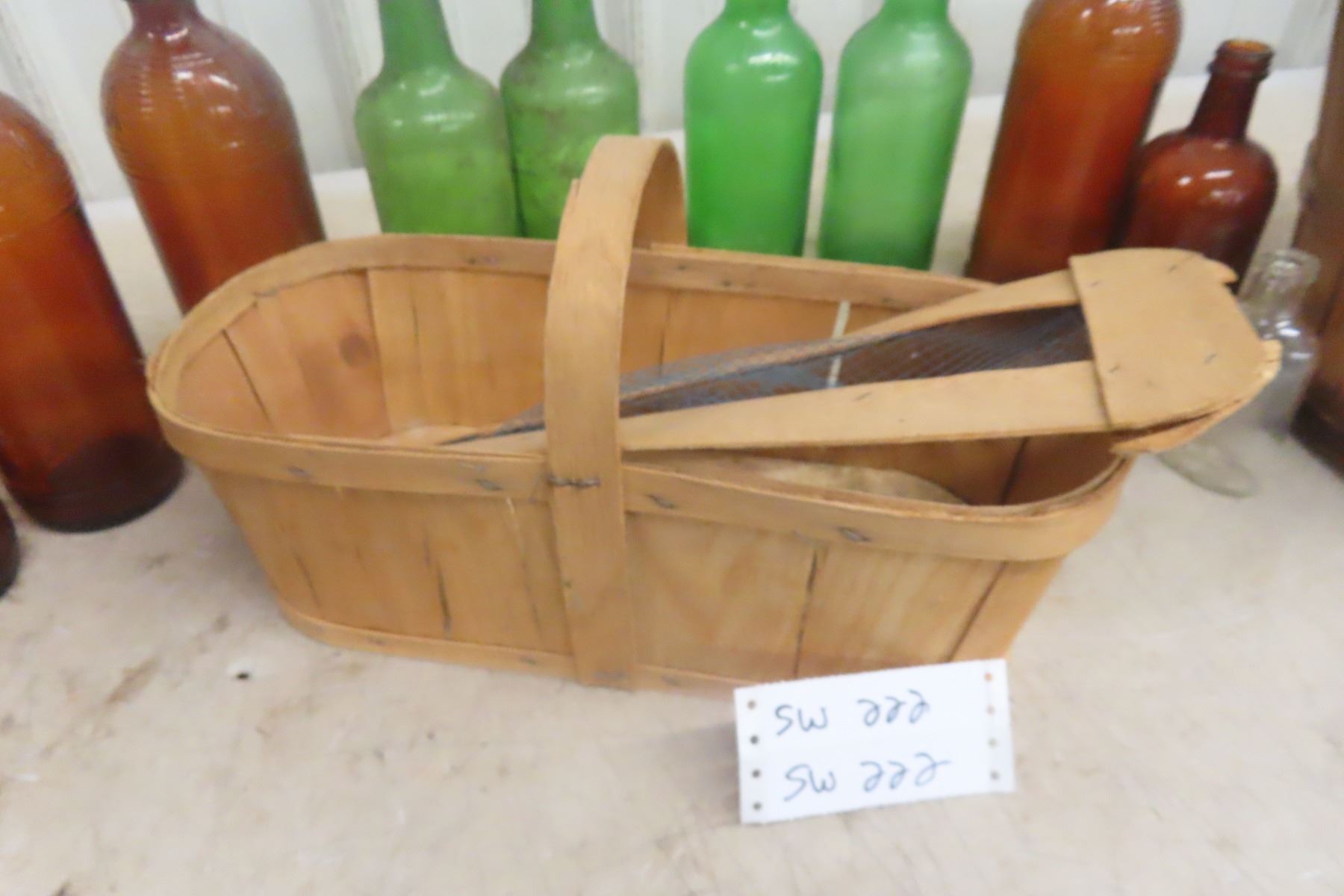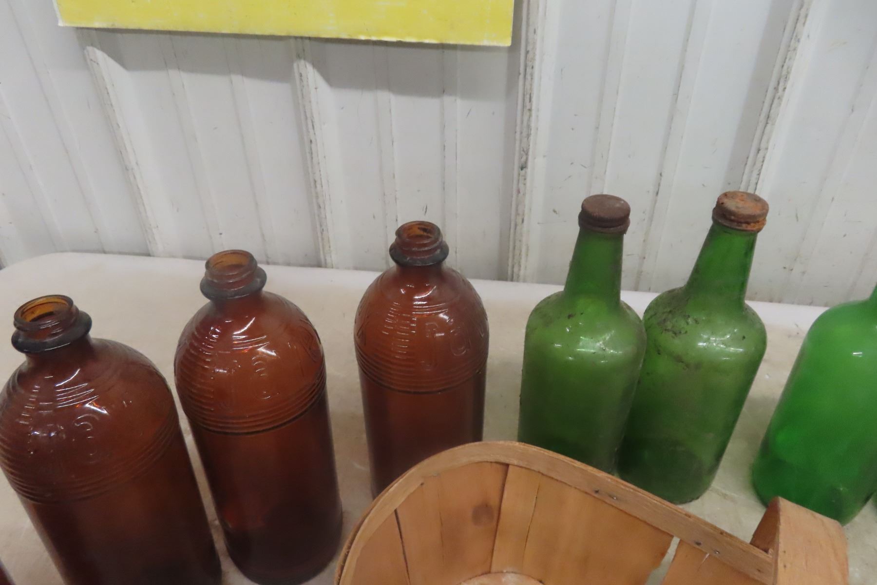 Bushell Baskets/Various Older Bottles/Clothes Line Pulley