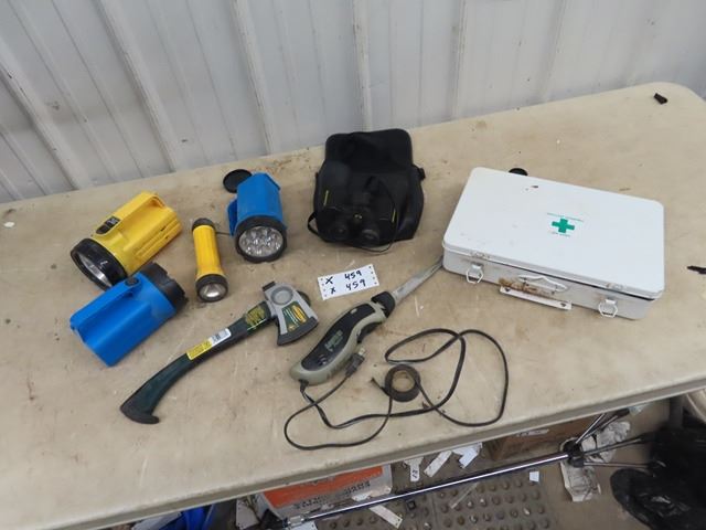 Bushnell 10 x 50 Binoculars, Hatchet, Flashlights & 1st Air Kit