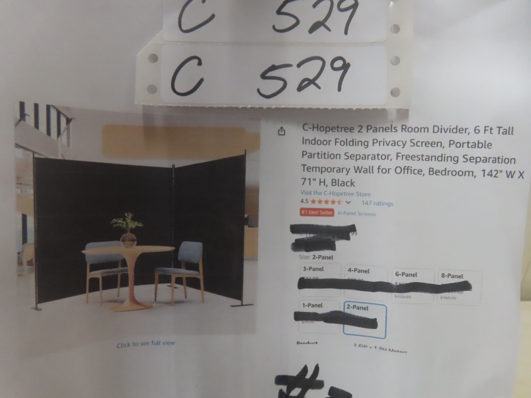 C-Hopetree 2 Panels Room Divider, 6FT Tall Indoor Folding Privacy Screen, Portable Partition Separator. Freestanding Separation Temporary Wall for Office, Bedroom 142'' W x 71'' H Black