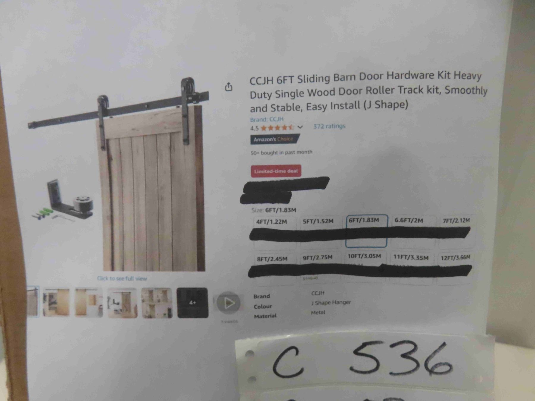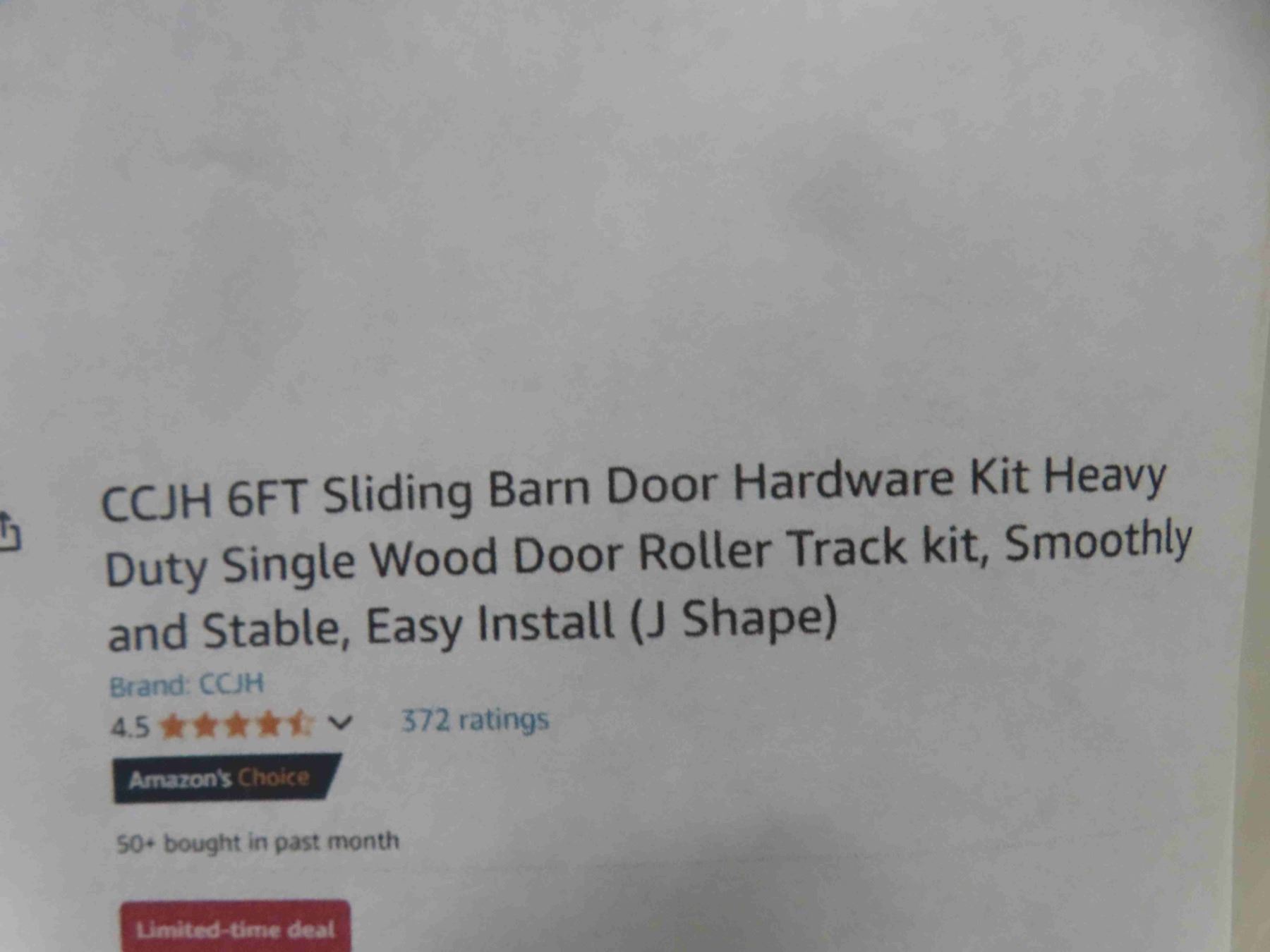 CCJH 6FT Sliding Barn Door Hardware Kit Heavy Duty Single Wood Door Roller Track kit, Smoothly and Stable, Easy Install (J Shape) - New or Store Return