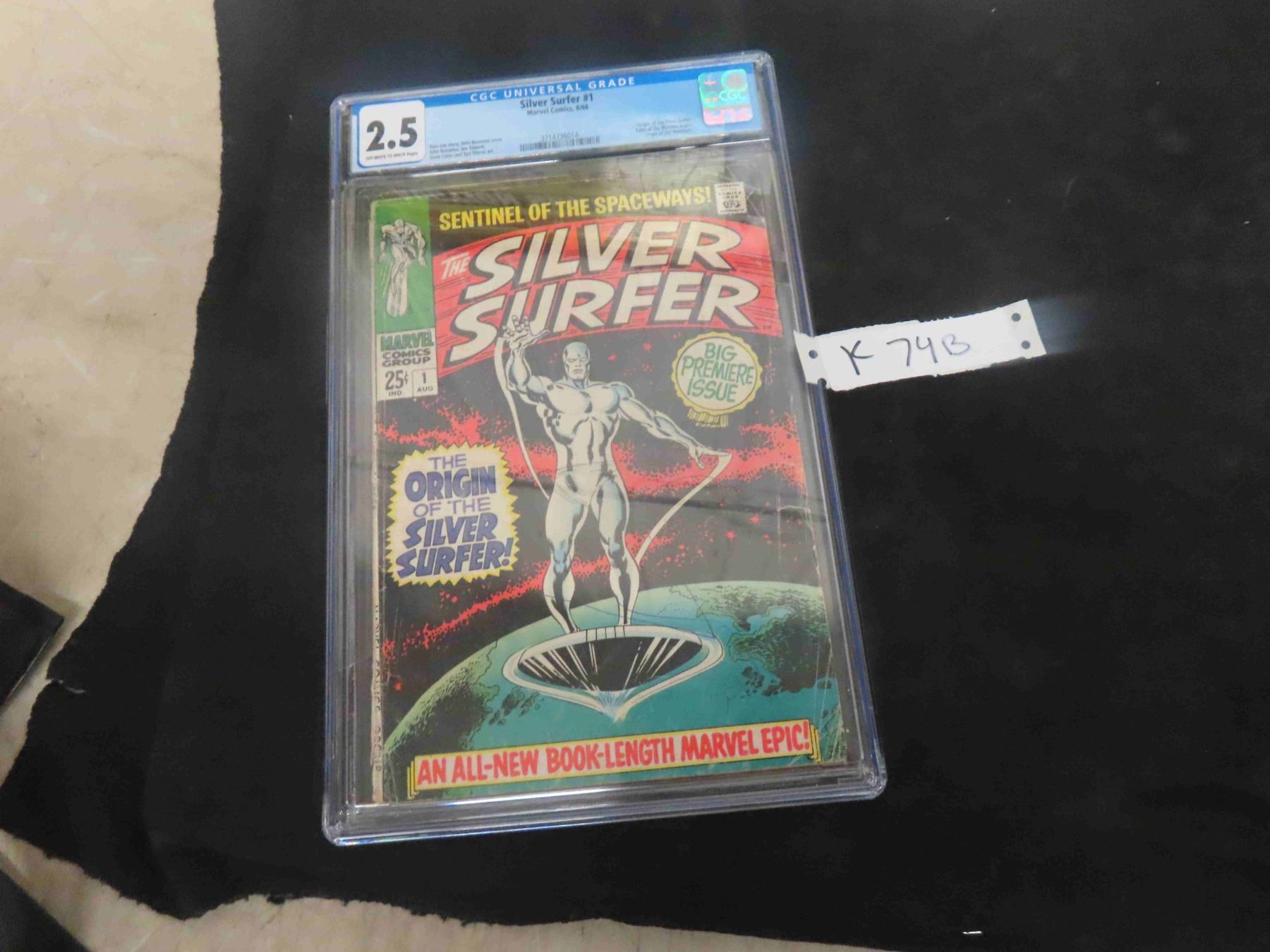 CGC Graded 2.5 Silver Age Issue Of the Silver Surfer #1 by Marvel Comics August 1968 Off-White to White Pages 'Origin of the Silver Surfer' 'Tales of the Watcher Begin' 'Origin of the Watchers'