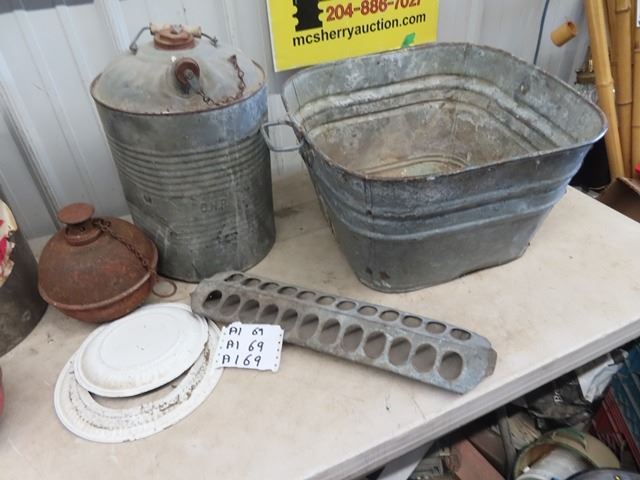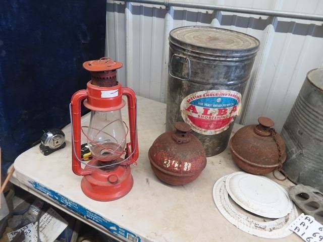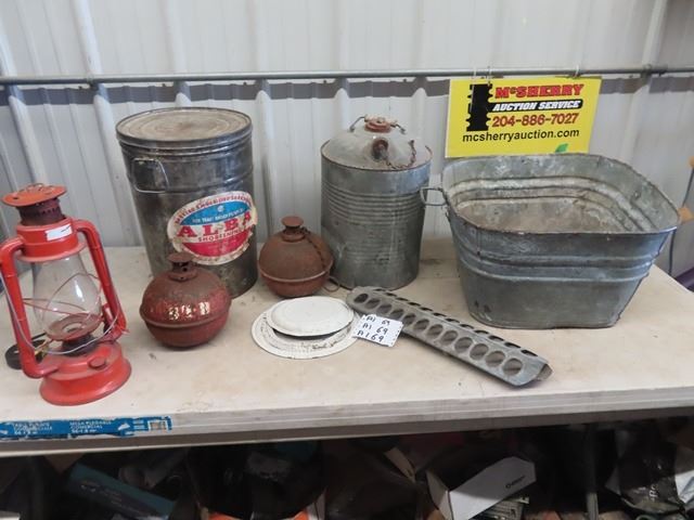 CNR Gas Can , Road FLares, Galv Tub, Chicken Feeder, Barn Lantern Plus More!
