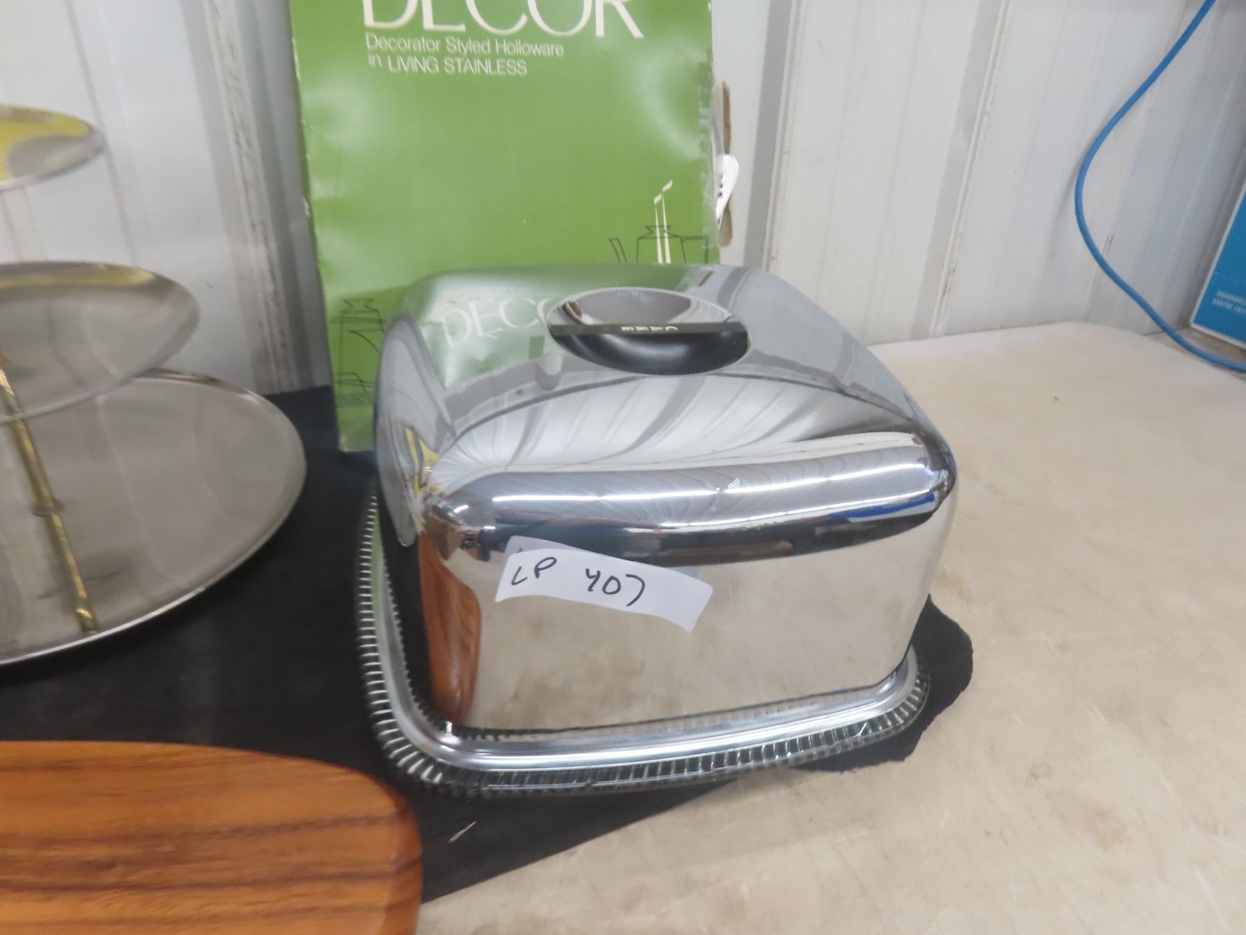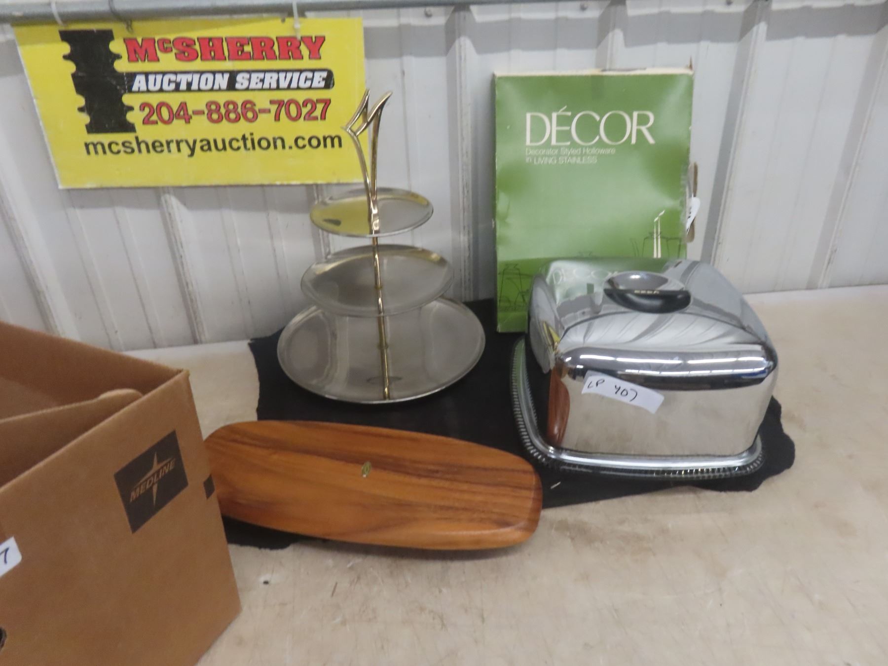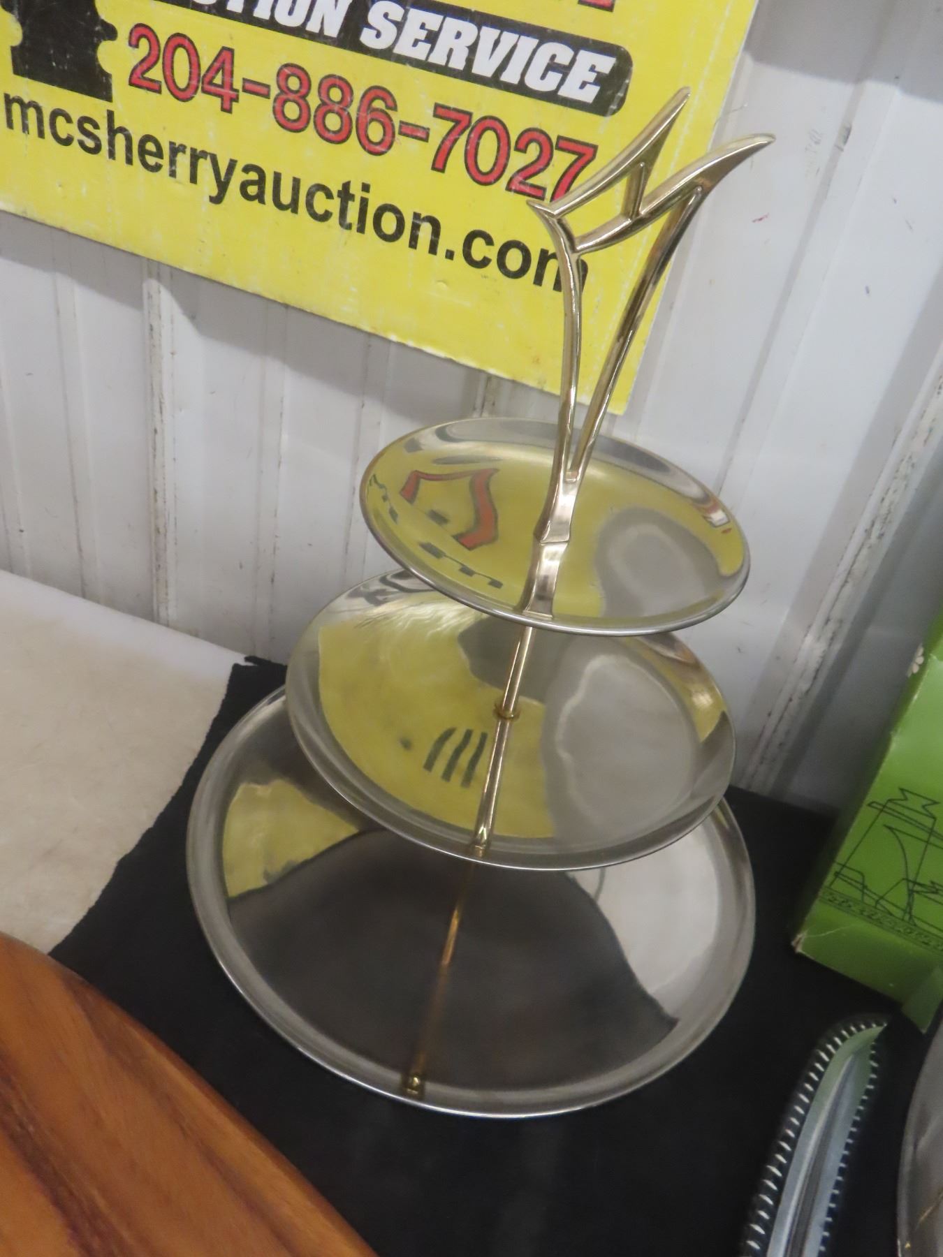 Cake Tray 12"x12" with Lid & Dainty 3 Tier Serving Tray Vintage Stainless