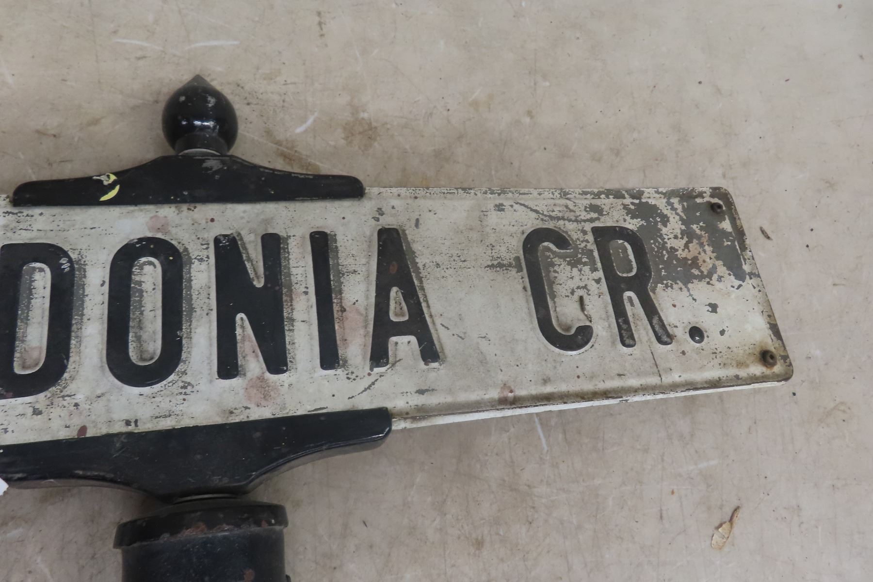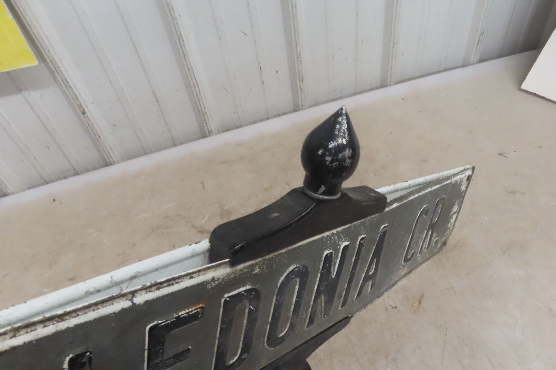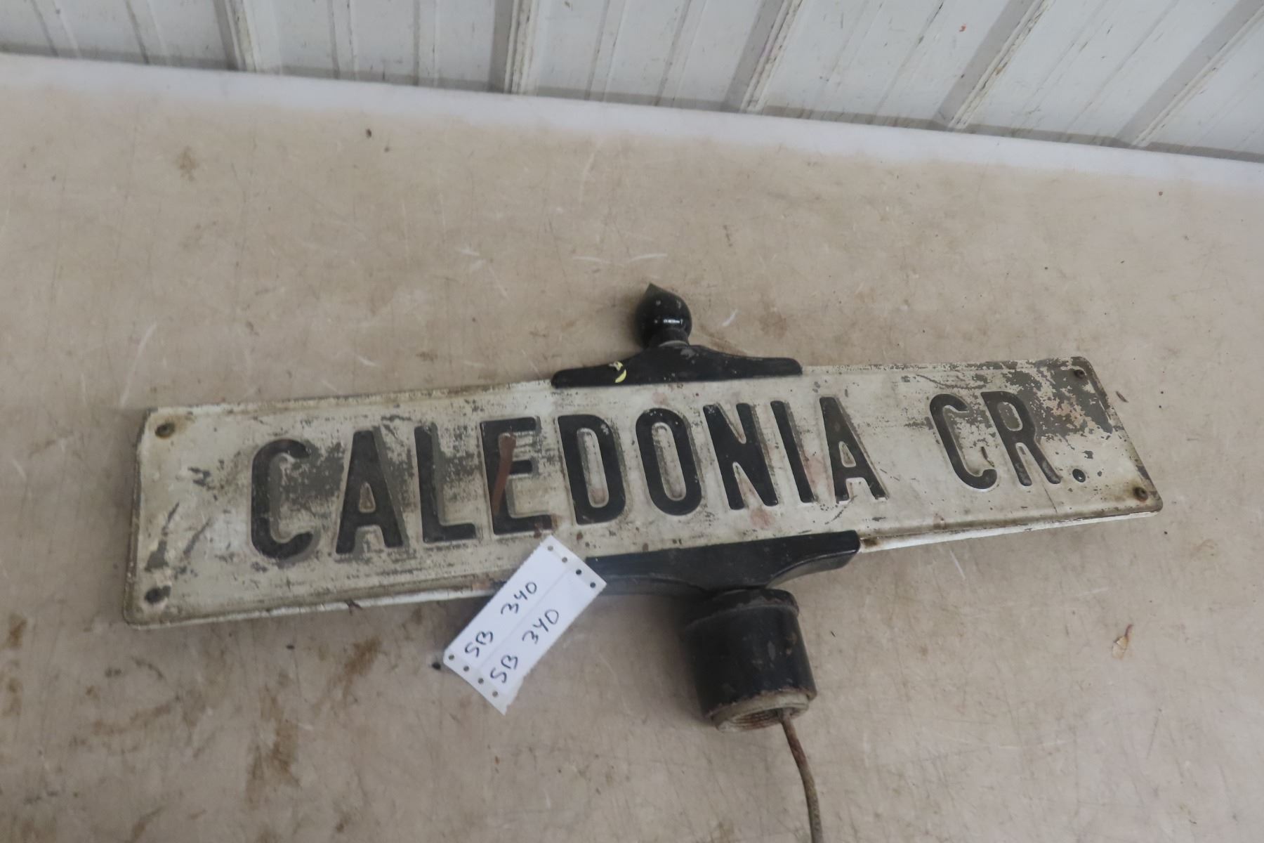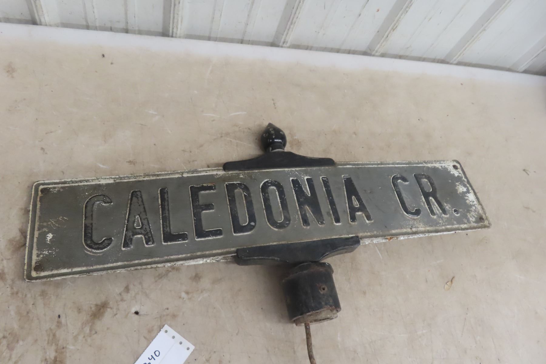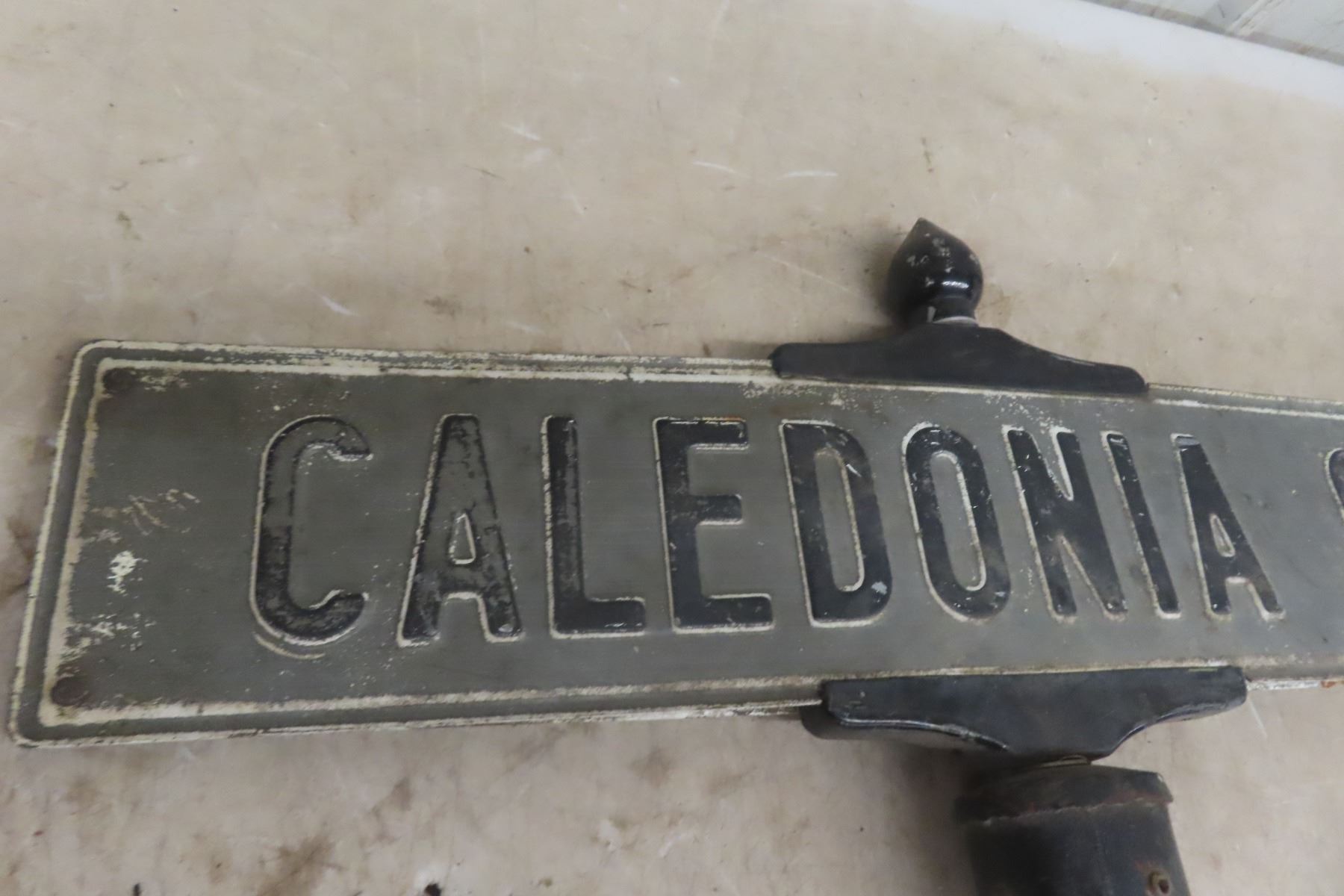 Caledonia Cr. 2-Sided Street Sign, Metal Embossed, With Cast Bracket Mount