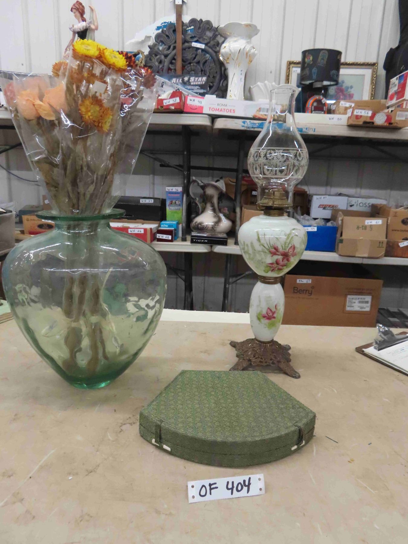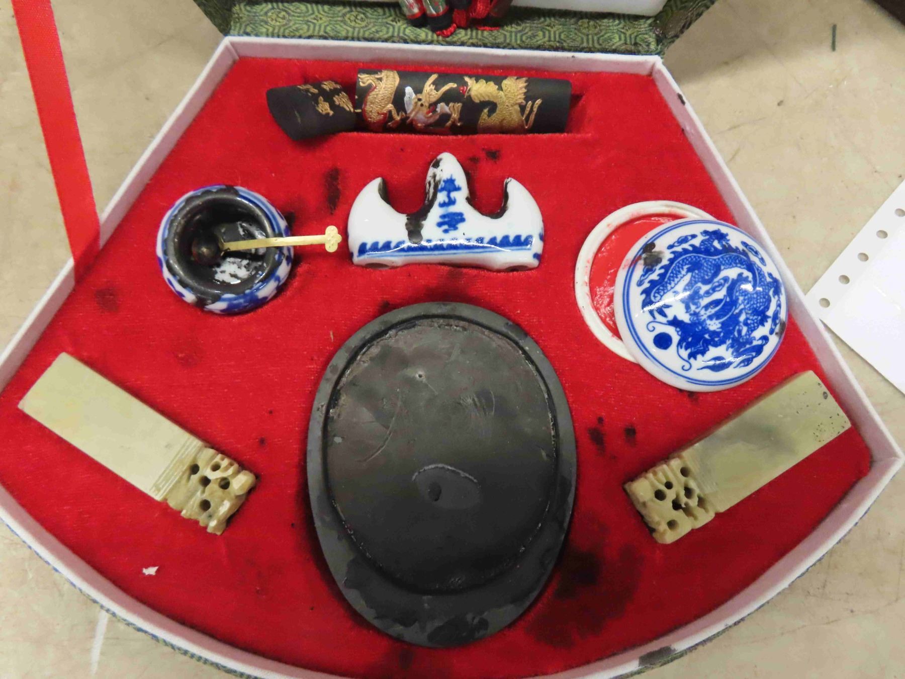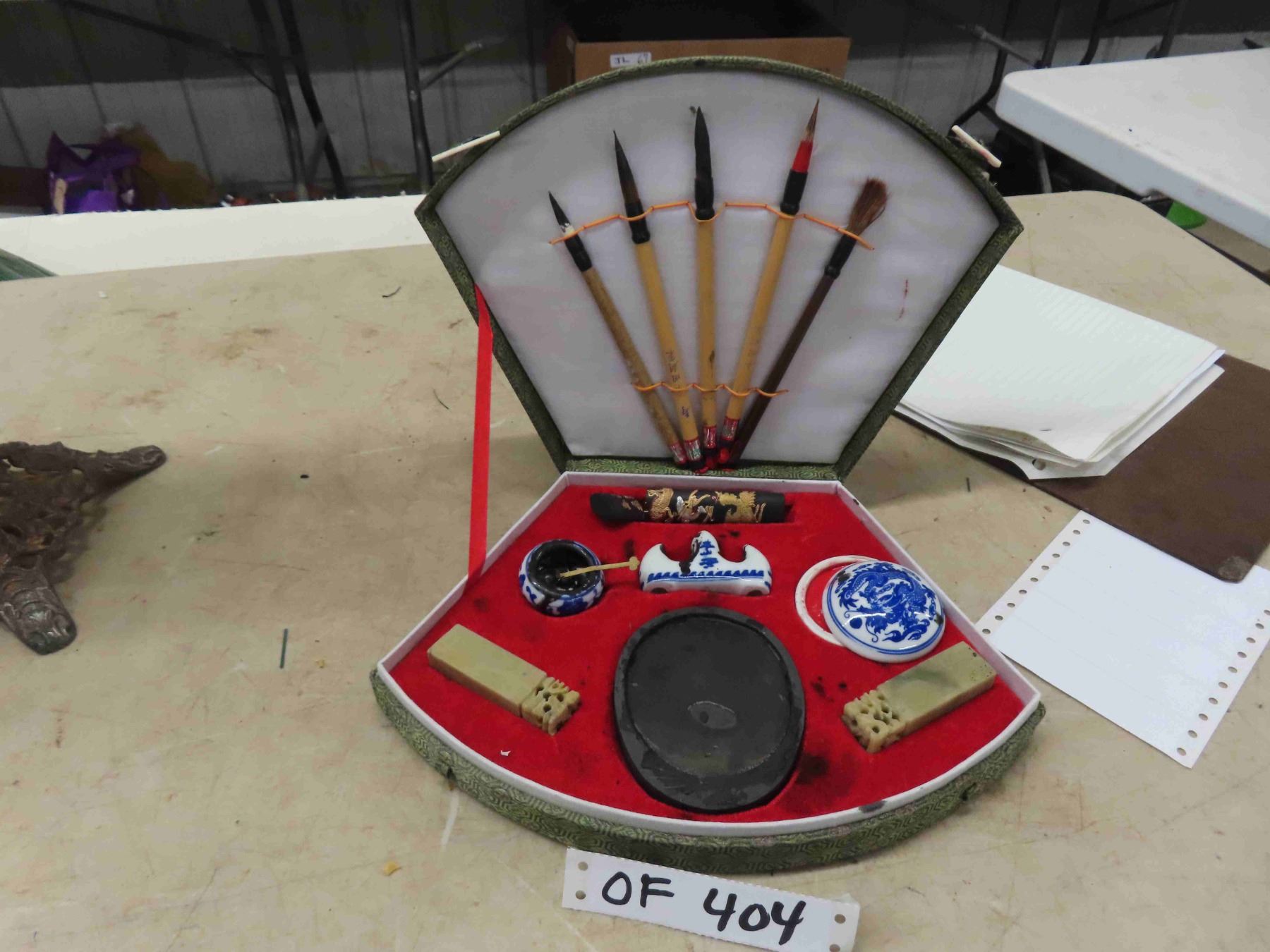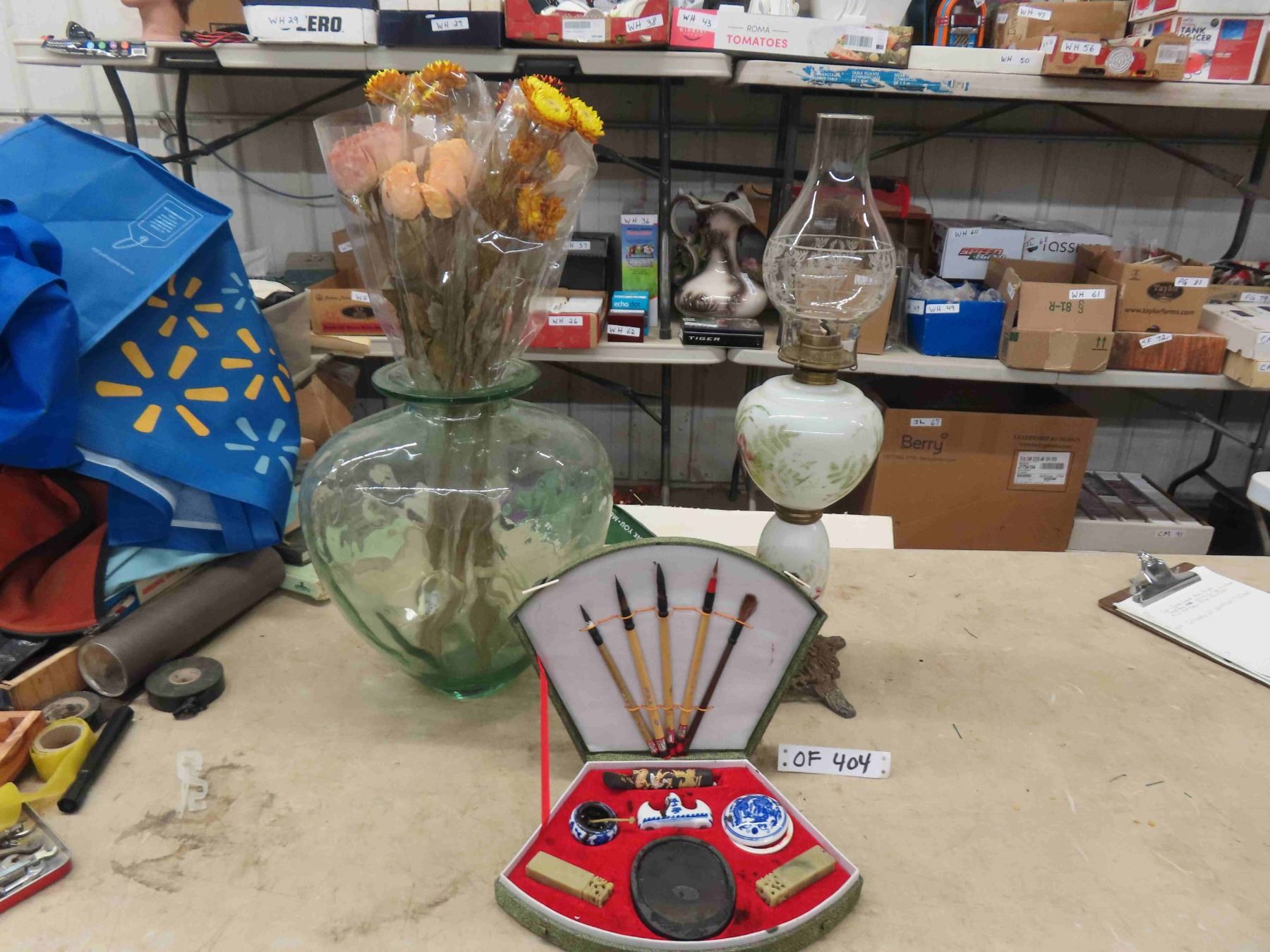 Calligraphy Set, Vase + Flowers, Oil Lamp