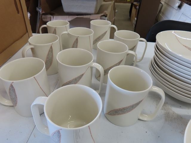 Calvin Klein Dinnerware - Nomad Pattern- (14) 9" Plates, (11) Soup Bowls, Cream + Sugar, Salad Bowl, 10 Mugs