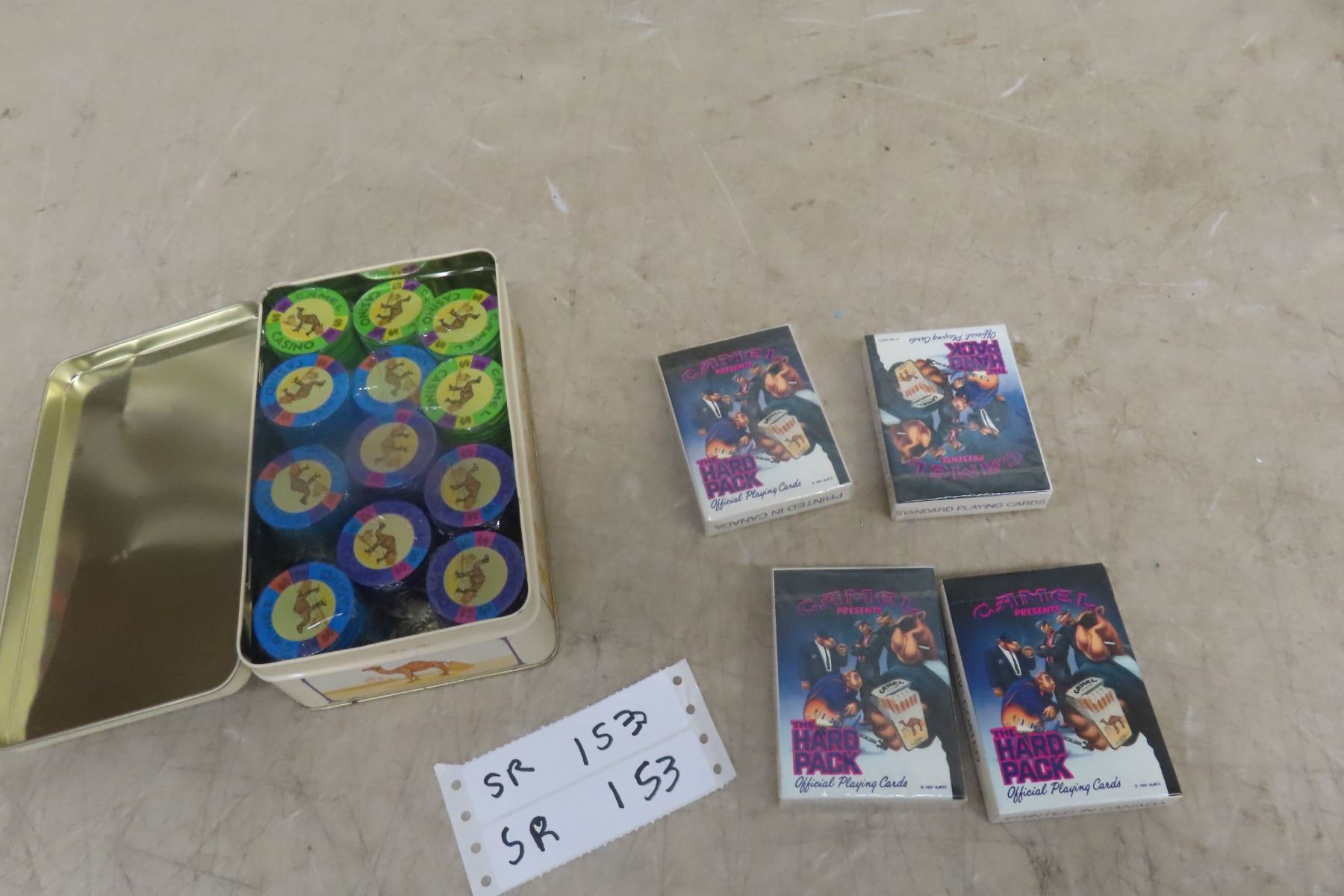 Camel Tin With Camel Poker Chips & 4 Packs Playing Cards