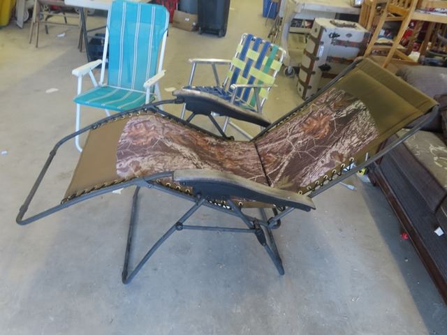 Camo Gravity Lounge Chair & 2 Folding Lawn Chairs