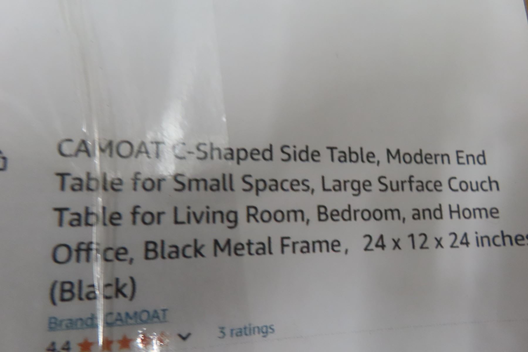 Camoat C-Shaped Side Table 24'' x 12'' x 24'' New in Box