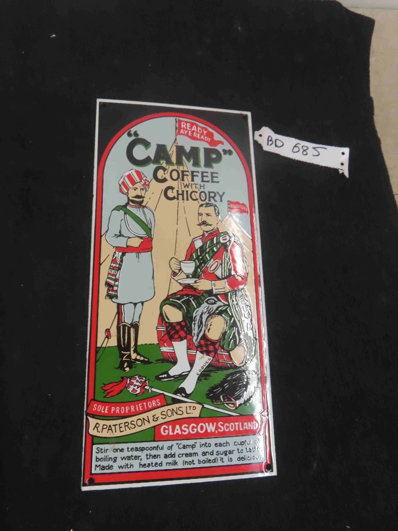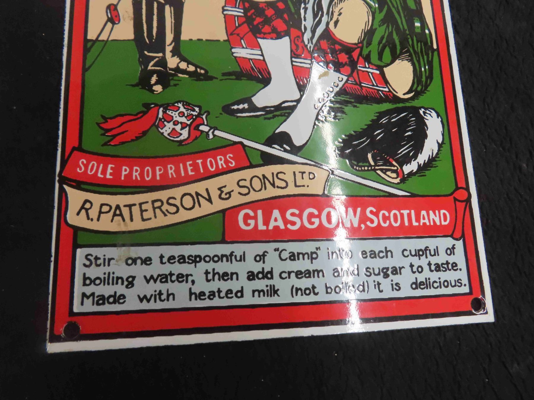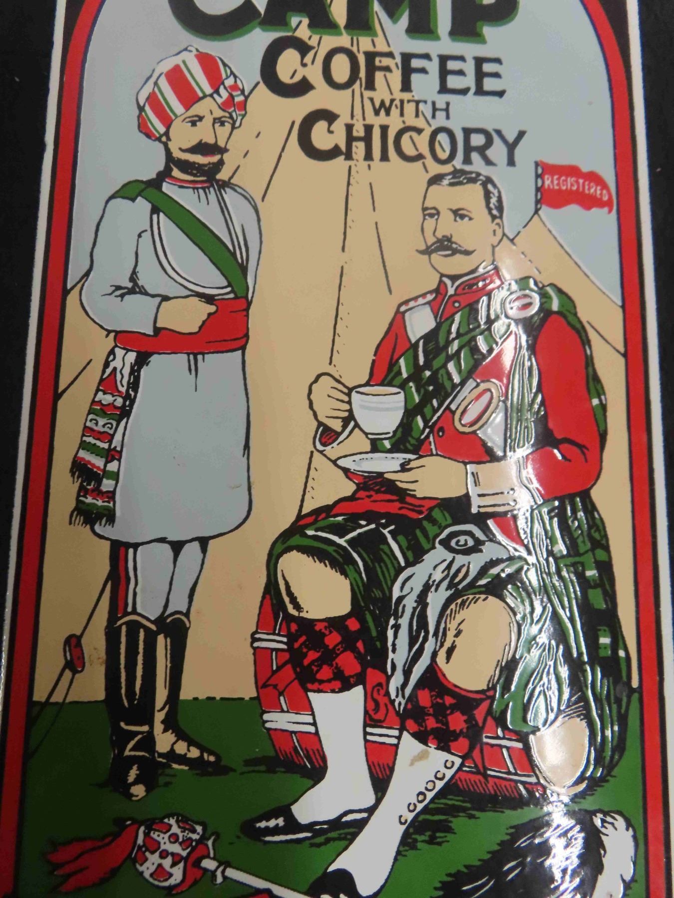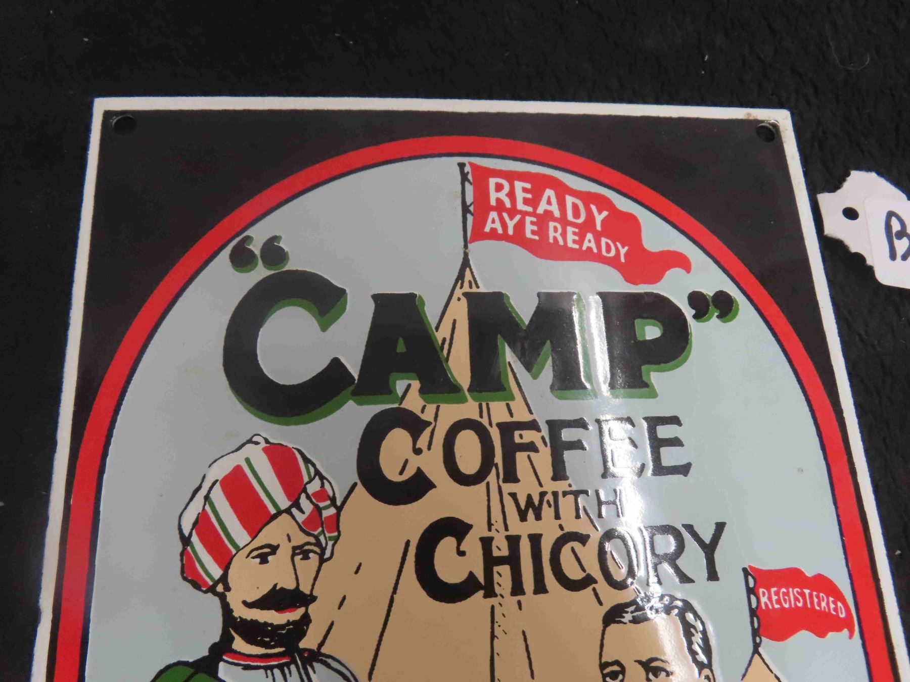 Camp Coffee Porcelain Sign 7" x 14" , Made in England - Nice Heavy Duty Porcelain Sign