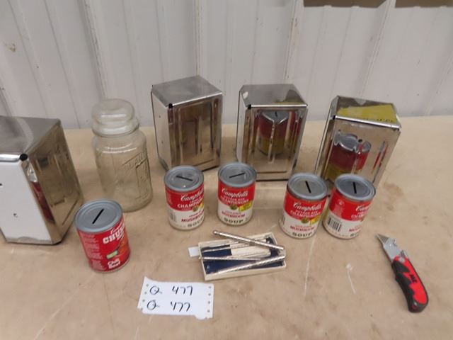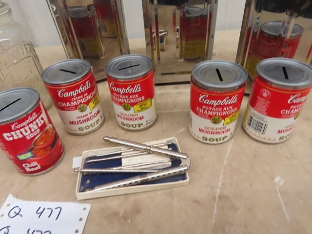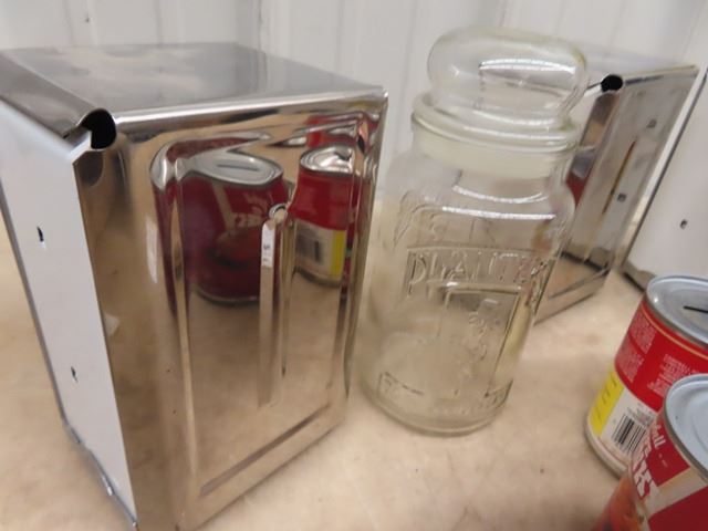 Campbell Soup Can Banks, Napkin Dispenser, & Planters Peanut Jar