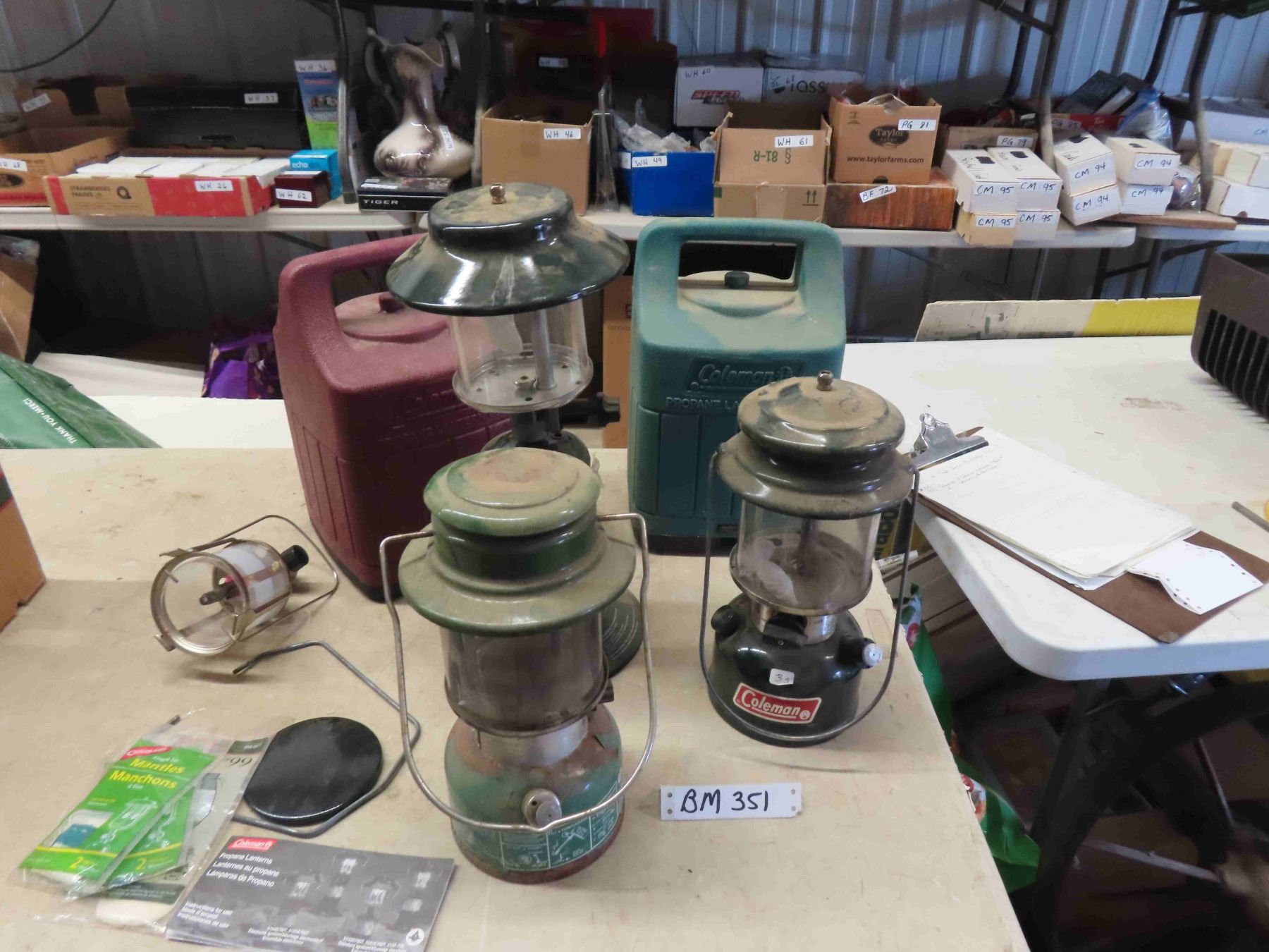 Camping; 3 Coleman Lanterns + Parts & 2 Coleman Lantern Cases