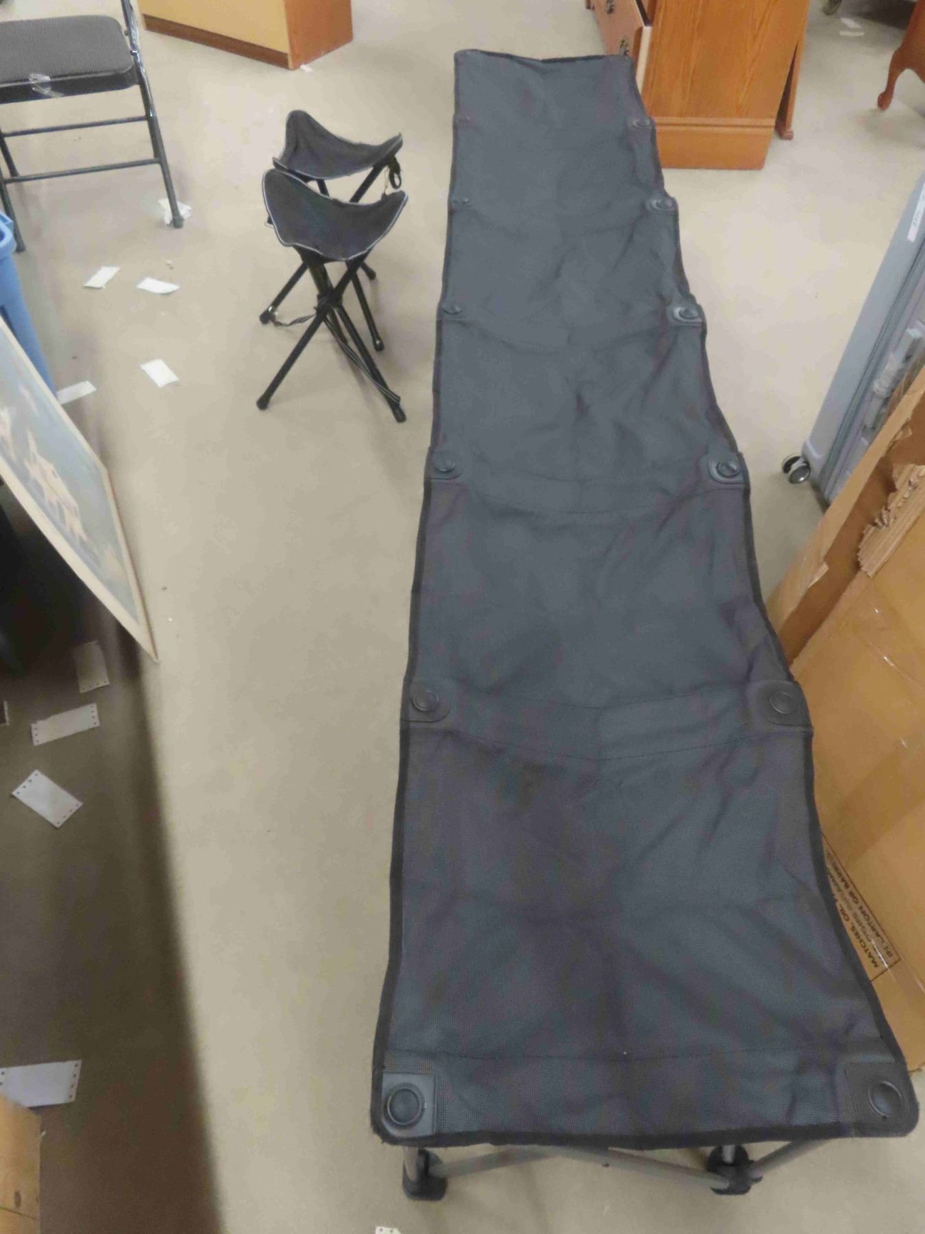 Camping Gear ; 2 Stools, Cot ??/ Bench 8' Long