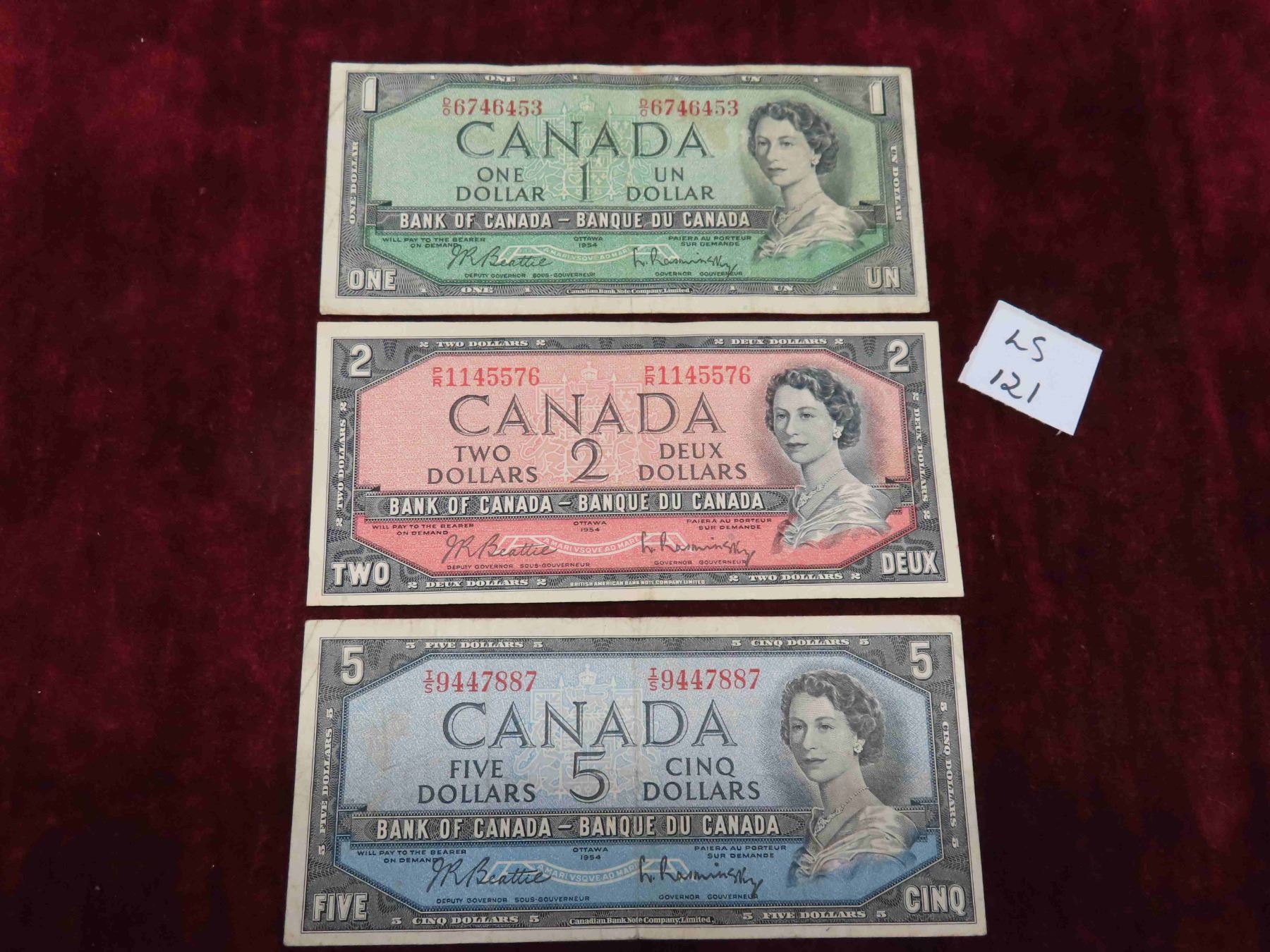 Canada 1954 $1, $2, $5 Bank Notes Beattie/Rasminsky