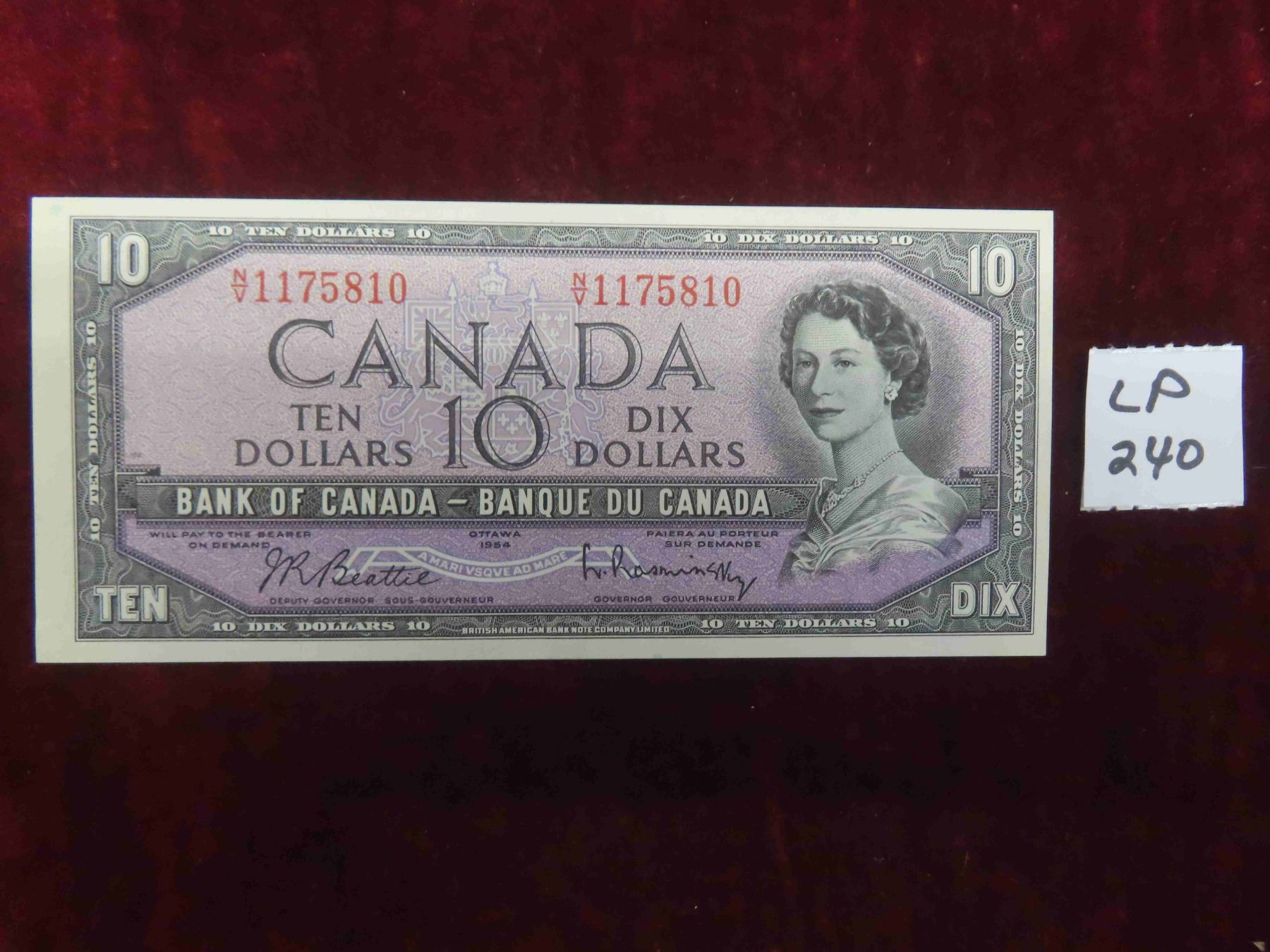 Canada 1954 Ten Dollar Note Beattie/Rasminsky Mint Condition