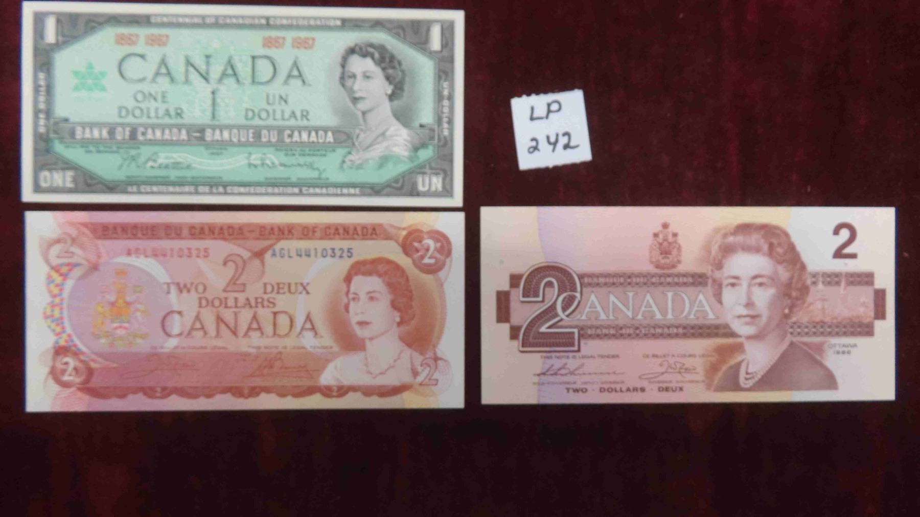 Canada 1967 One Dollar Centennial, 1974 Two Dollar, 1986 Two