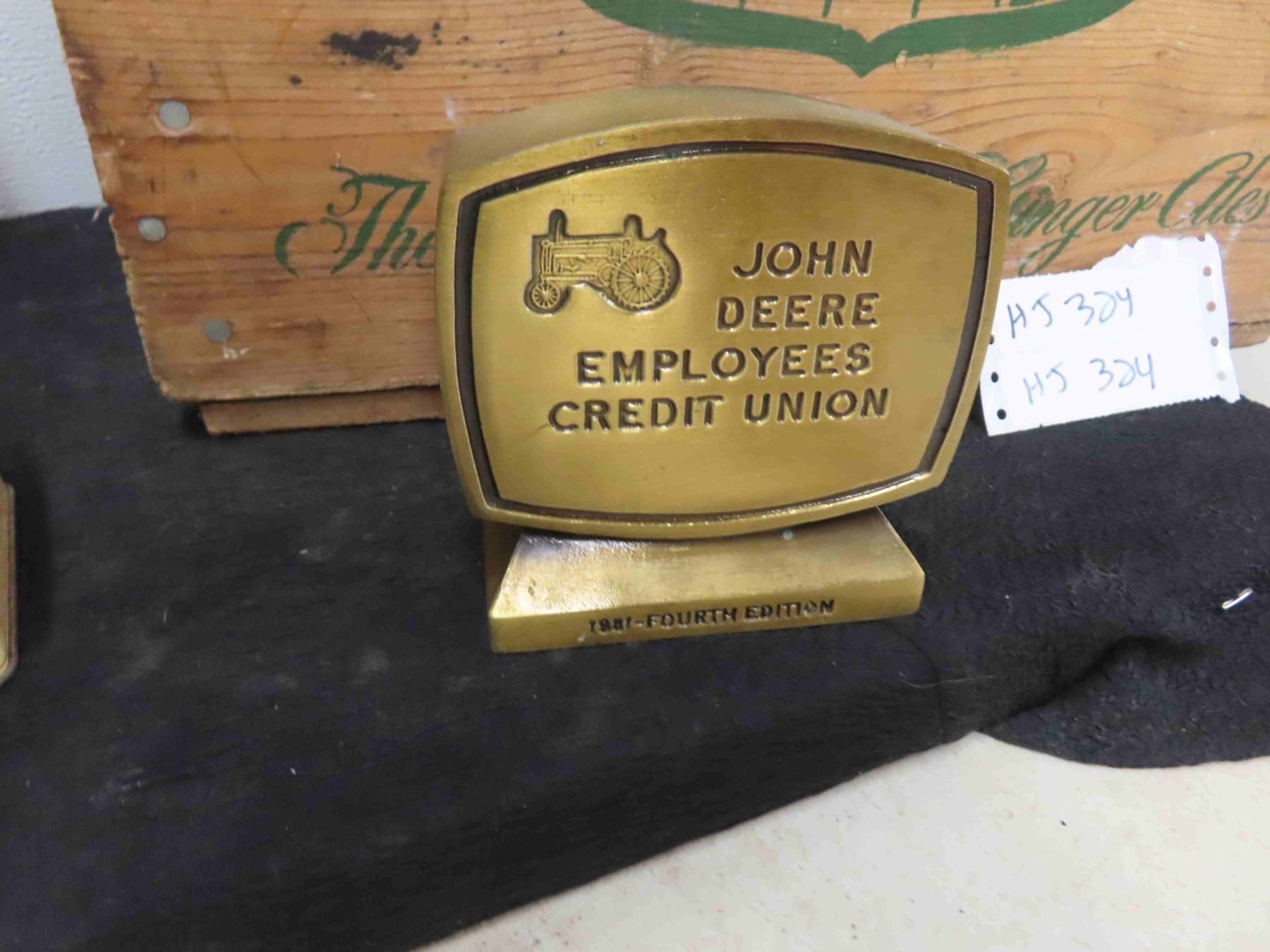 Canada Dry Pop Crate , John Deere Employees Credit Union Brass Display,