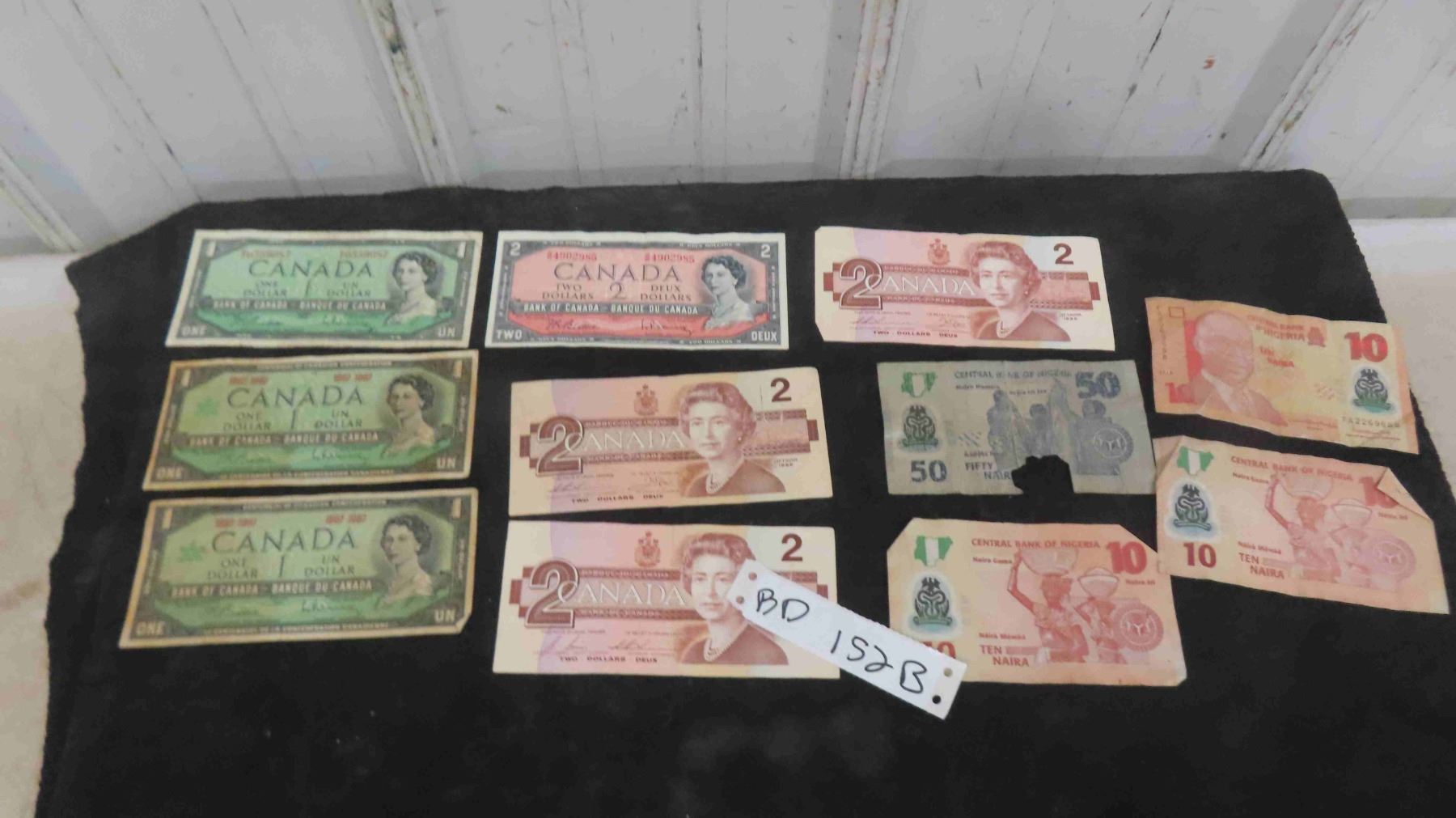 Canadian $1 & $2 Bills : (3) 1986 $2 Bills , (1) 1954 $2 Bill (1) 1954 $1 Bill (2) 1867-1967 $1 Bills (4) Nigeria Bills