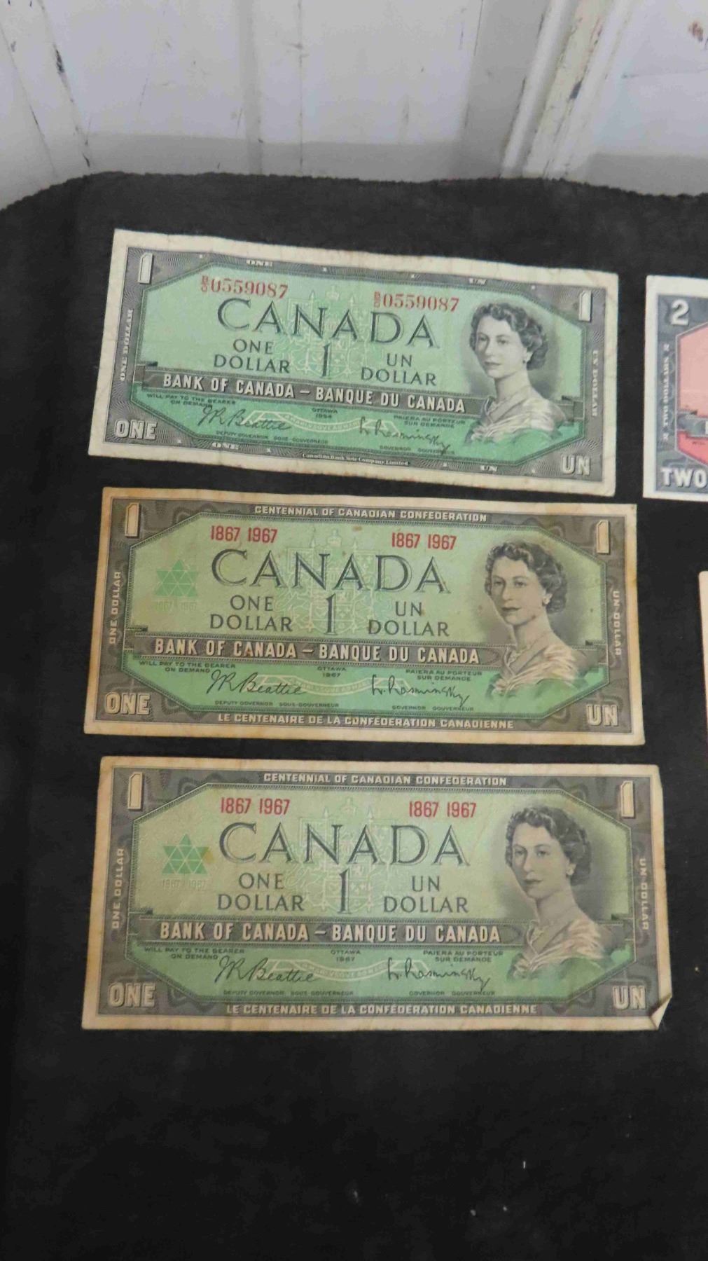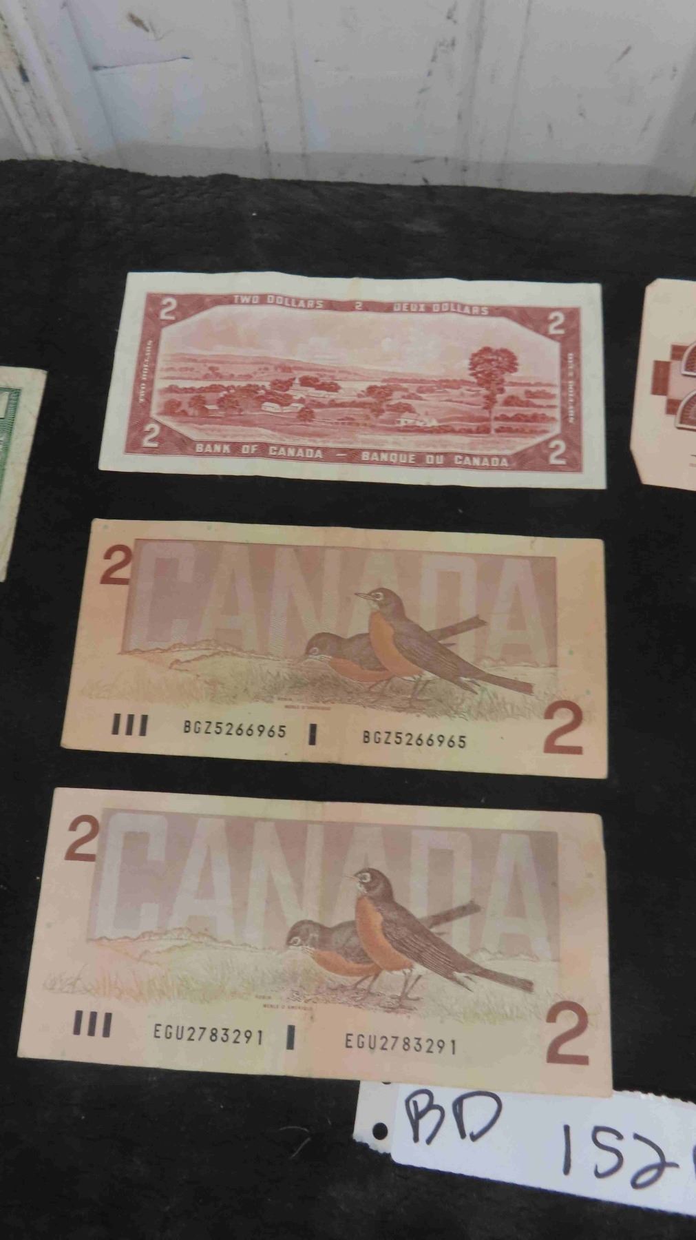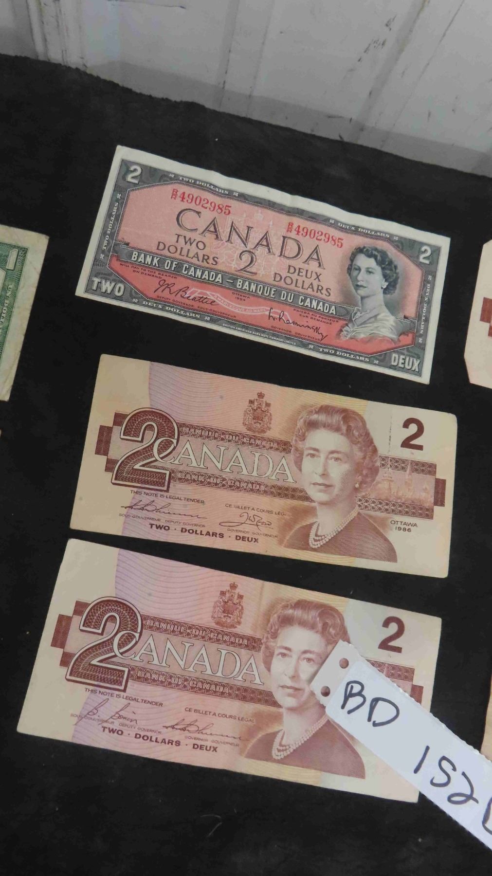 Canadian $1 & $2 Bills : (3) 1986 $2 Bills , (1) 1954 $2 Bill (1) 1954 $1 Bill (2) 1867-