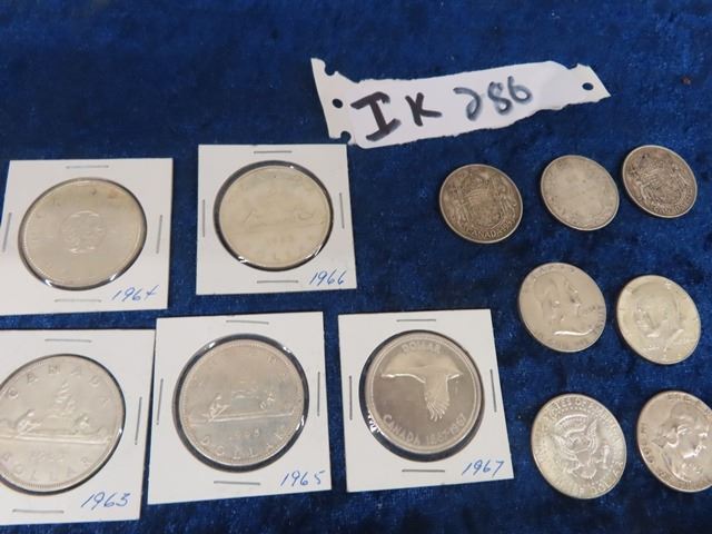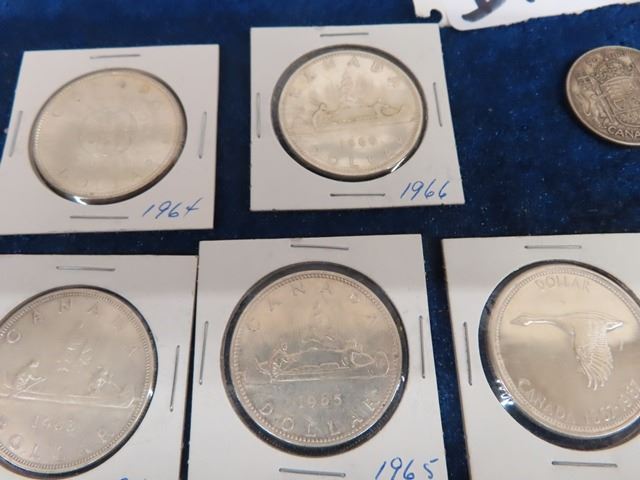 Canadian 1963, 64,65, 66 & 1967 Dollar Coins, American 1/2 Dollar Coins - 1951 & 1952 & 2 -1968, Canadian 1/2 Dolalr Coins 1913, 1944, & 1953