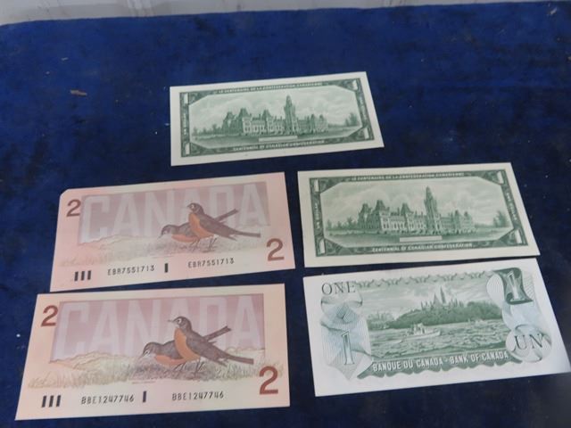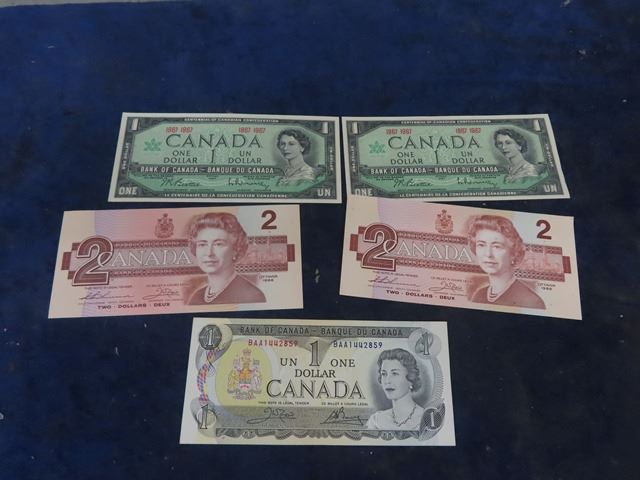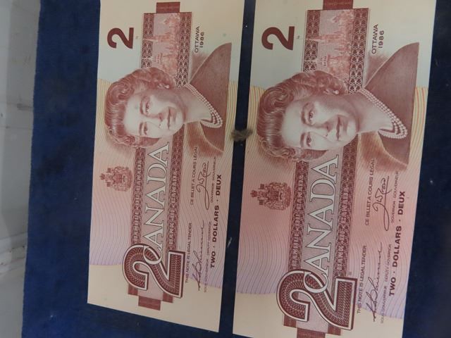 Canadian Dollar Bills; 1) 11973 $1 , 2) 1967 $1, 1) 1986 $2