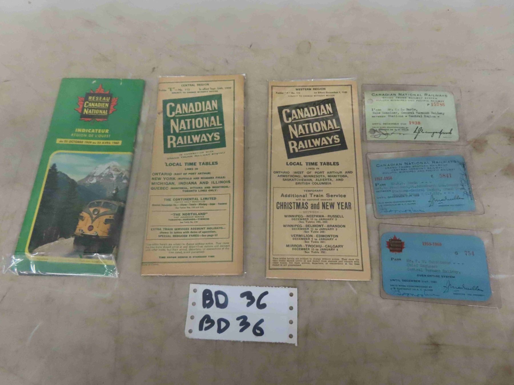Canadian National Railways (CNR) 1930's + 50's Employee Rail Passes + Time Tables