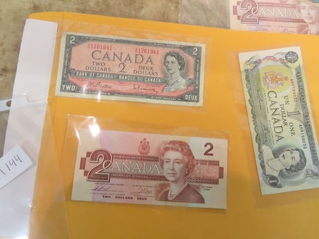 Canadian Paper Money 1954 2 Dollar Bill, 1973 1 Dollar Bill, & 1986 2 Dollar Bill