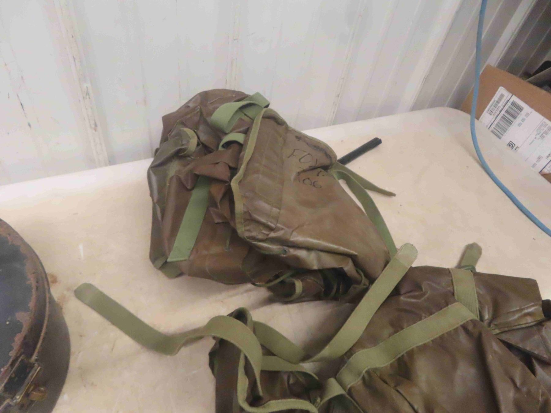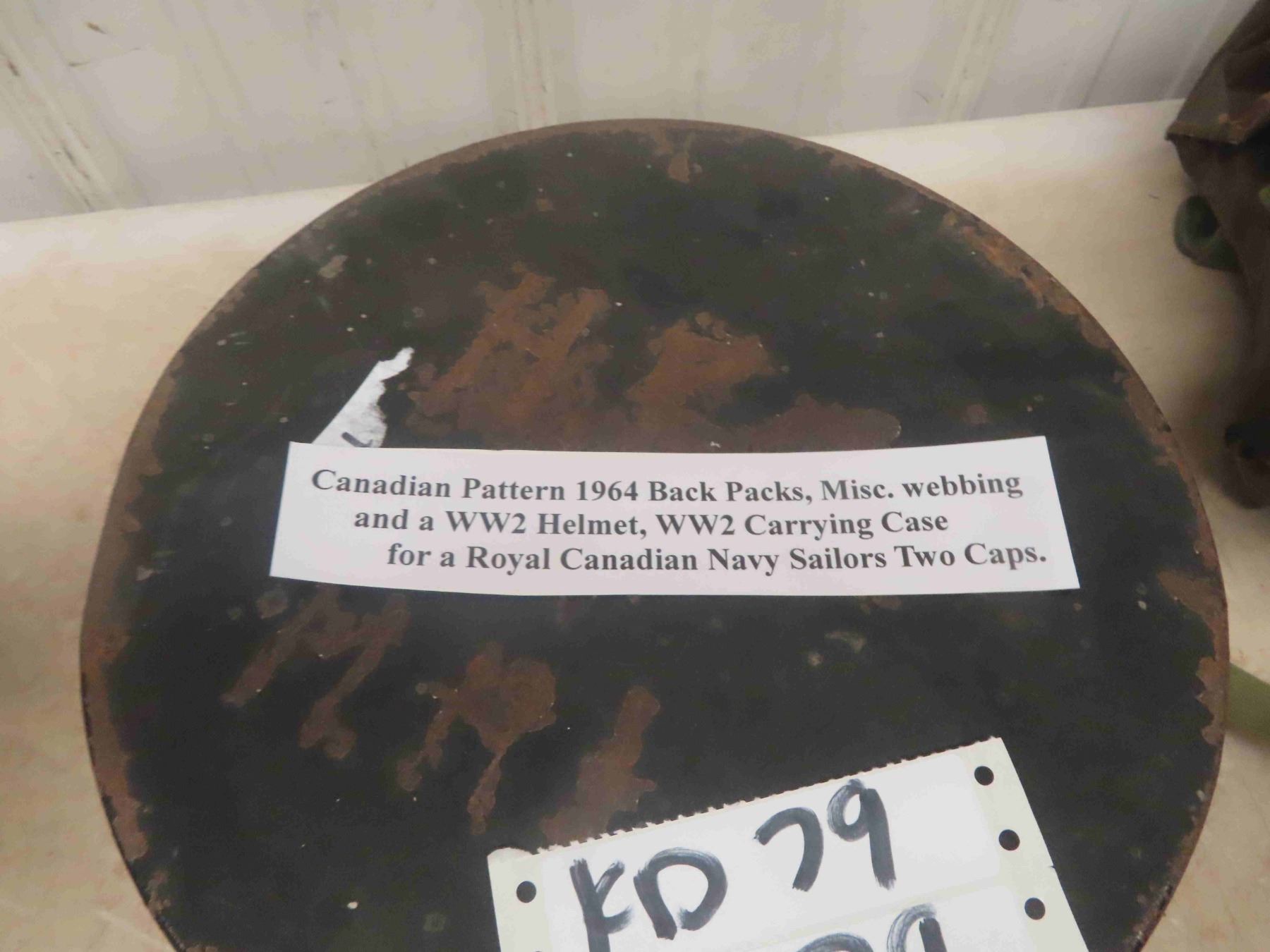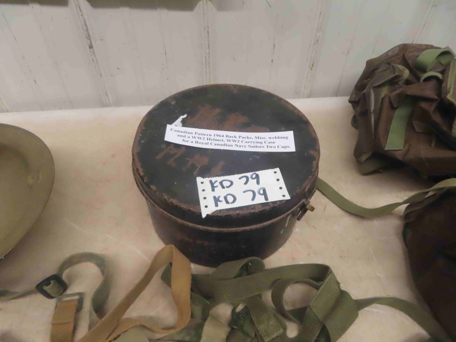 Canadian Pattern 1964 Back Packs , Misc Webbing , WW2 Helmet , WW2 Carrying Case for a Royal Canadian Navy Sailors 2 Caps