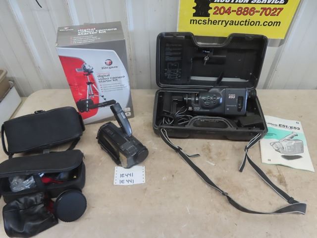 Cannon ES3 8mm Camcorder , Sony AF Camcorder with Extra Lenses, Targus Tripod in Box - Both Cameras have Cases - Untested