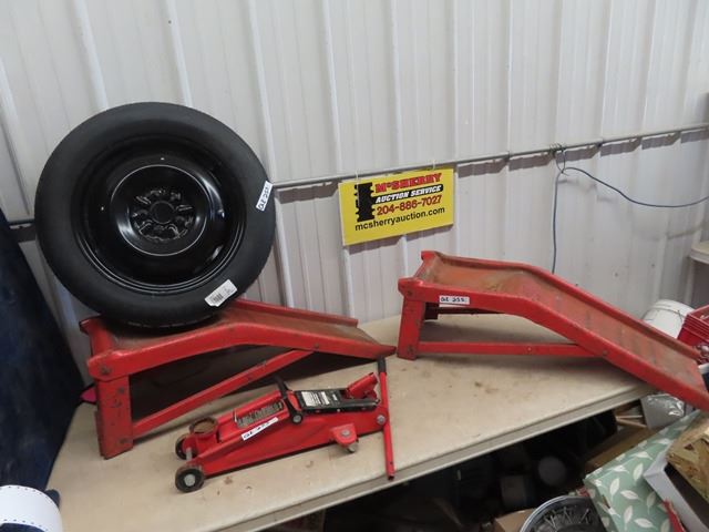 Car Ramps, Floor Jack, Tire & Rim- T135/80R-16