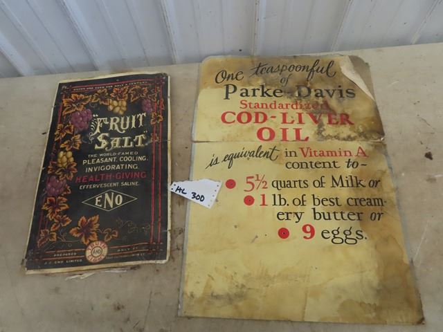 Cardboard Fruit Salt Sign 13" x 20" & Parker Davis Cod Liver Oil 19" x 27" (In 2 Pcs)