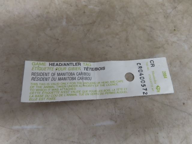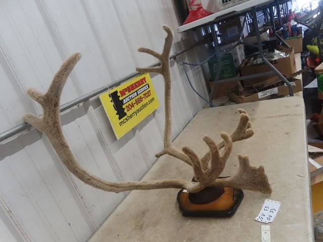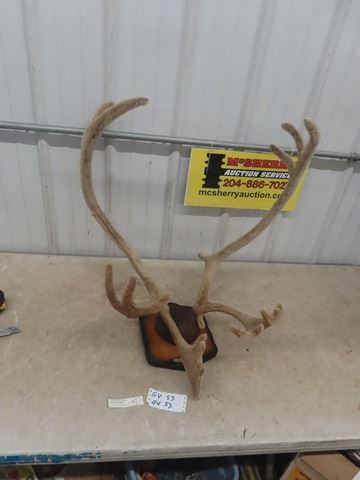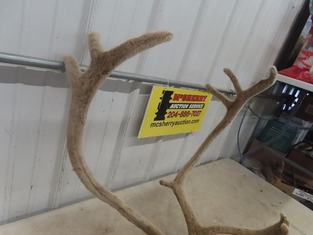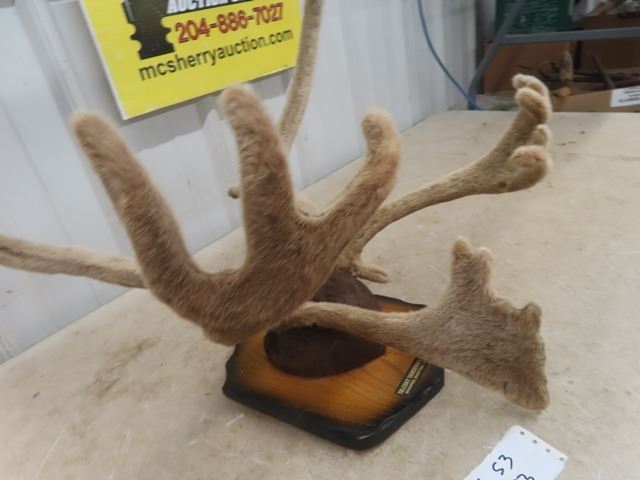 Caribou Mounted Antlers in Velvet Stage with Head Tag