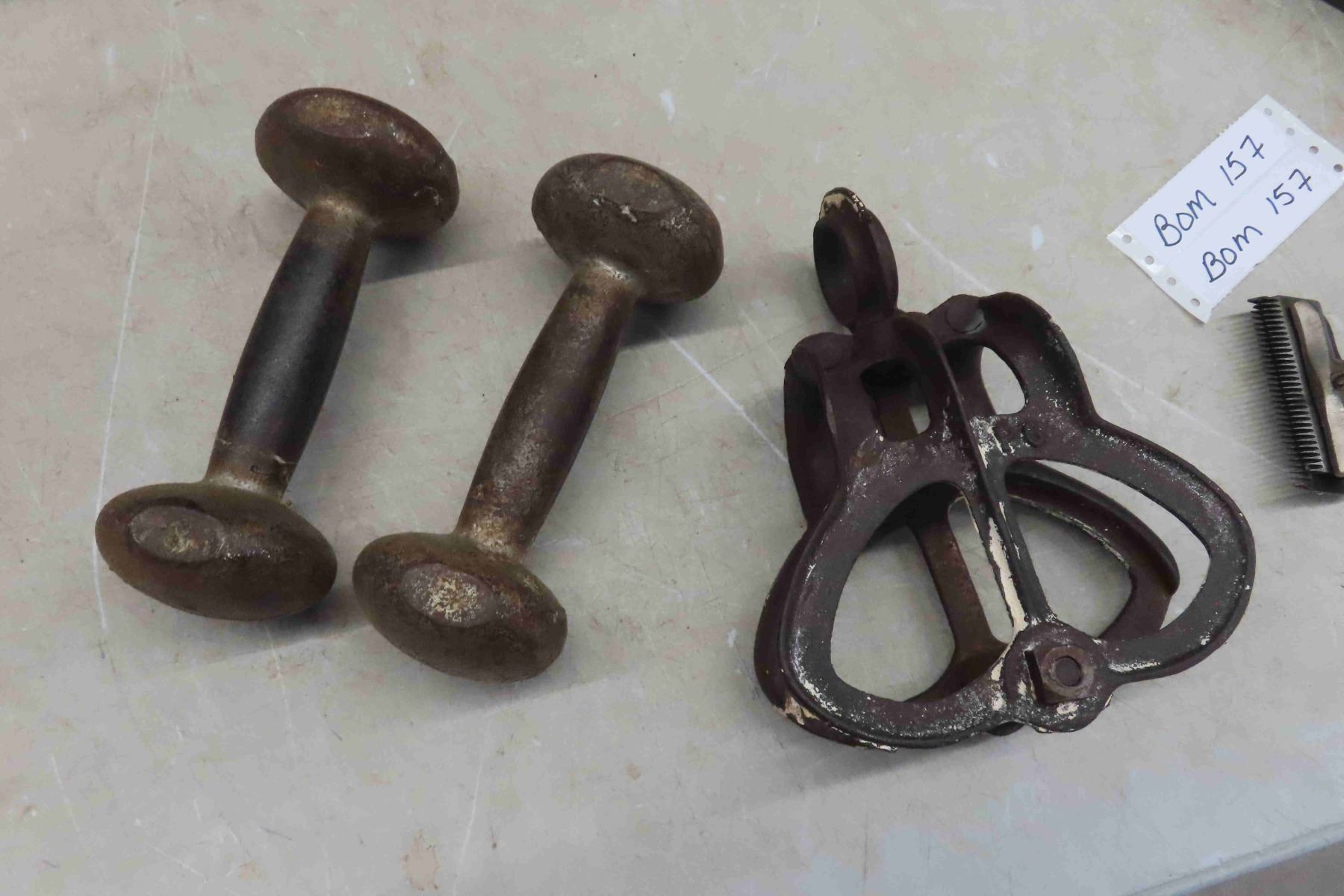 Carpenters Tool Box with Big Beam Flashlight, Tire Pump, Dumbells, Hair Clippers+