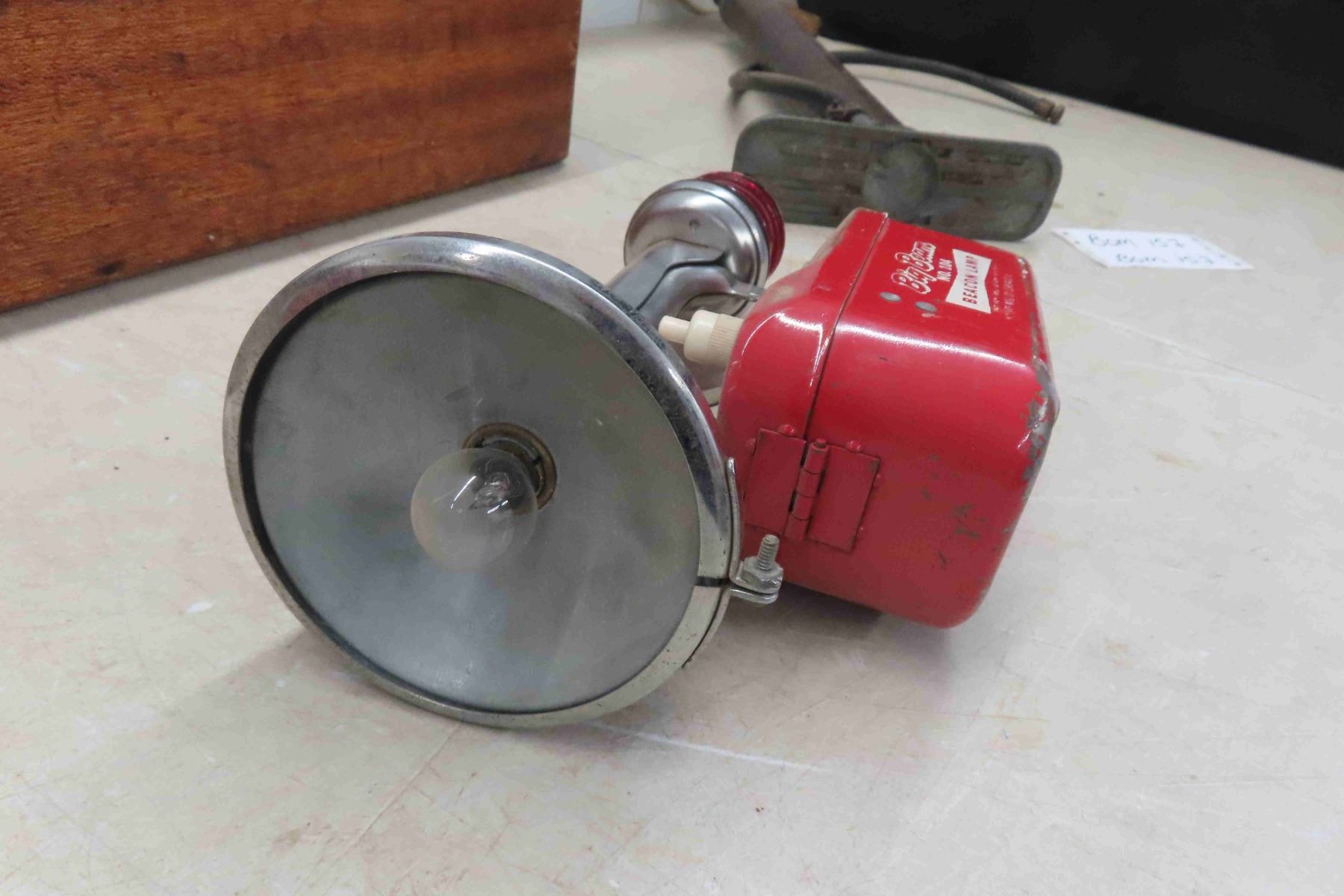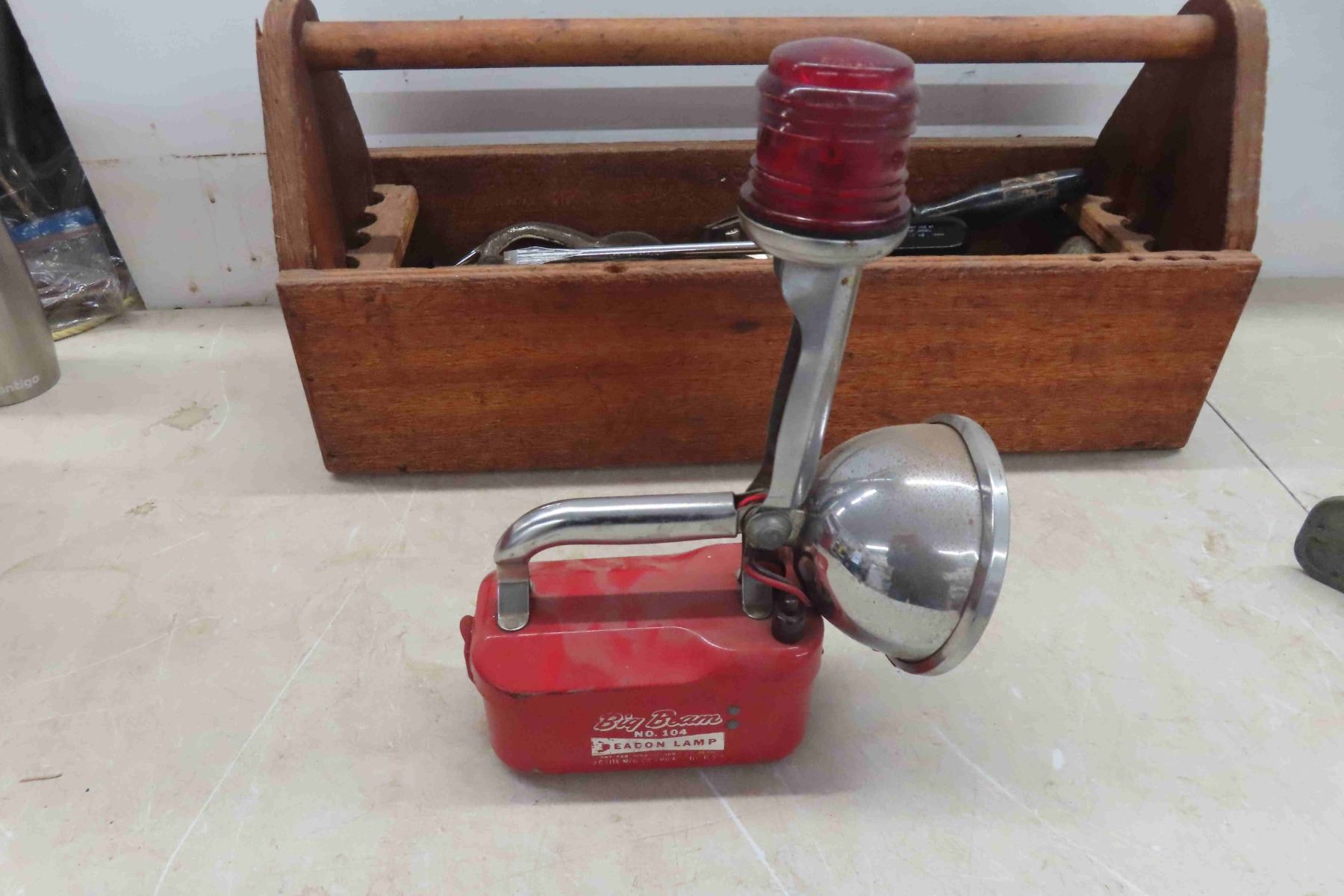 Carpenters Tool Box with Big Beam Flashlight, Tire Pump,