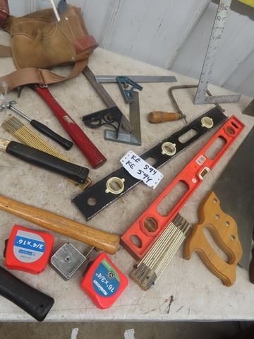 Carpentry Items ; Saws, Hammers, Levels, Square, Tape Measure plus more