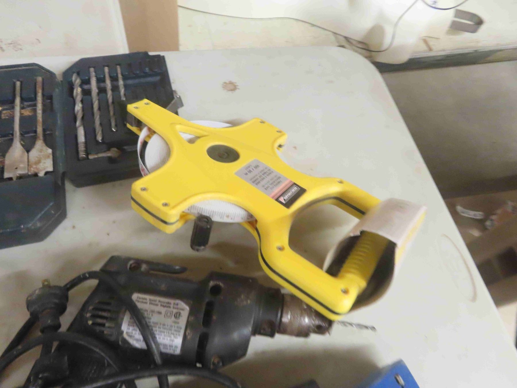Carpentry OddsnEnds of Tools ; Power Jig Saw, Drill, Drill Bits, 100' Tape Measure,