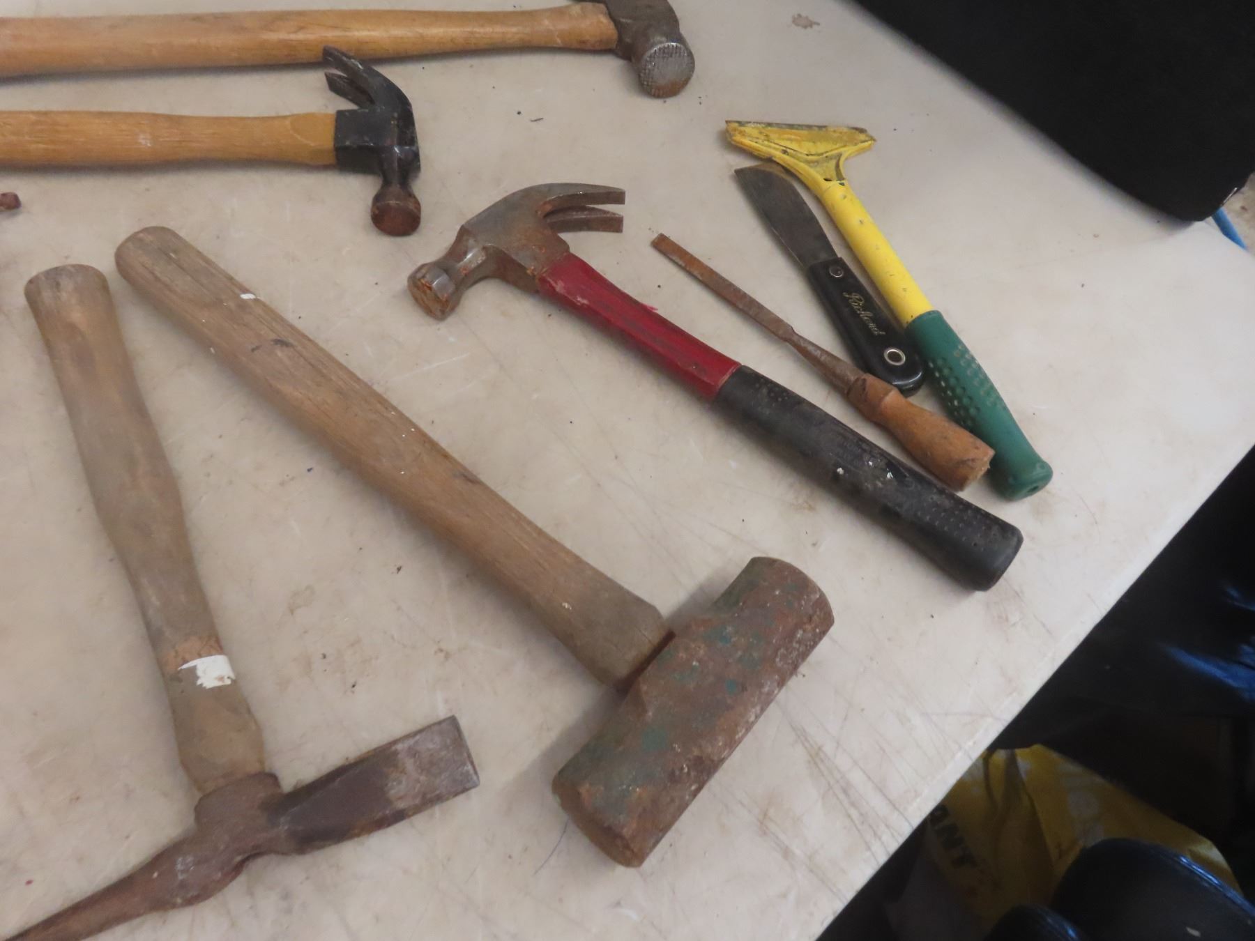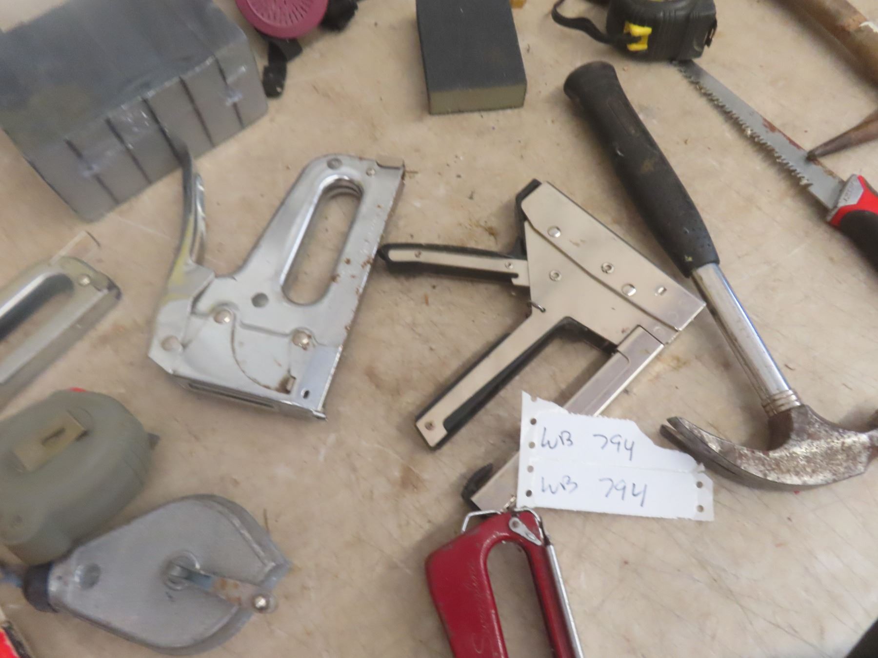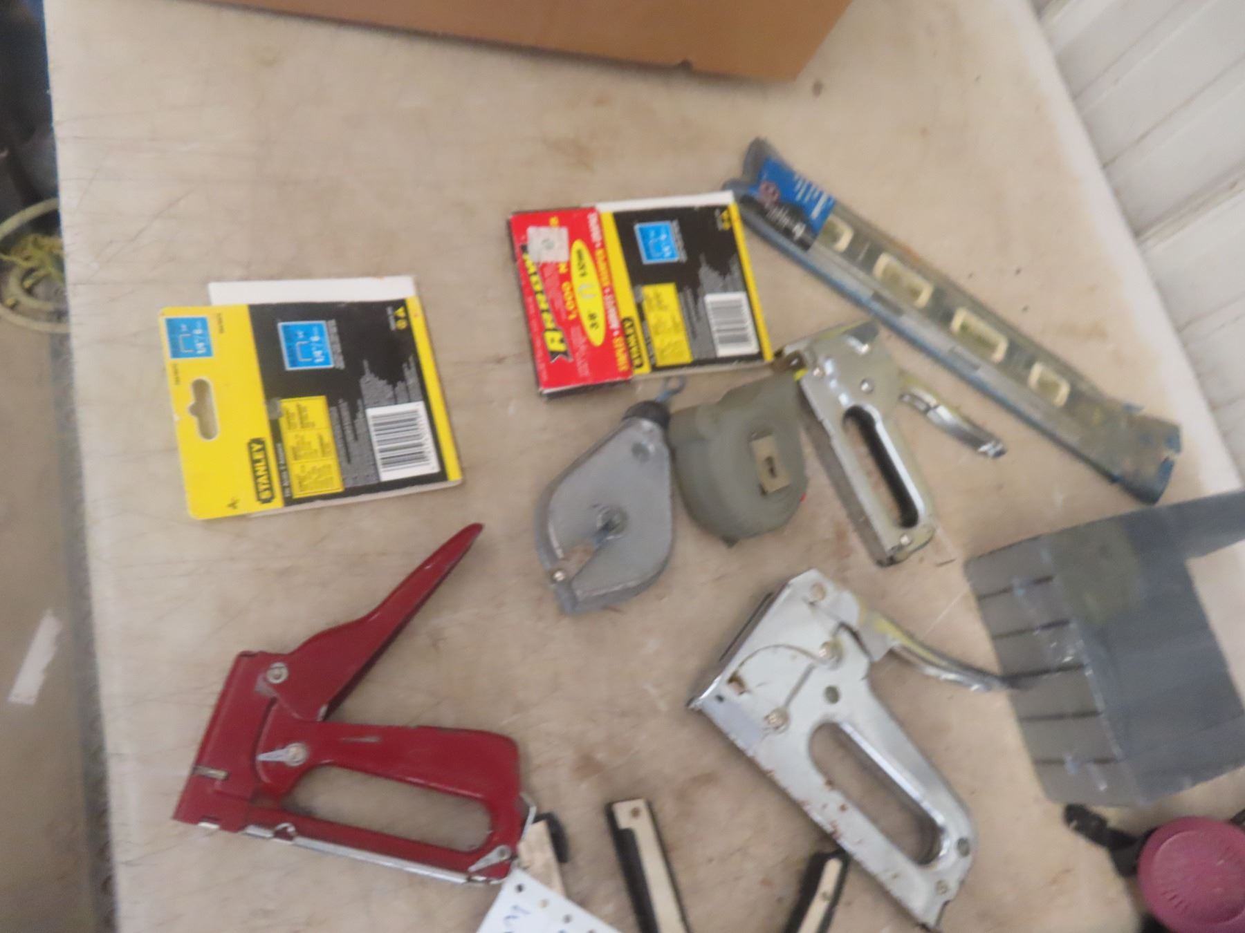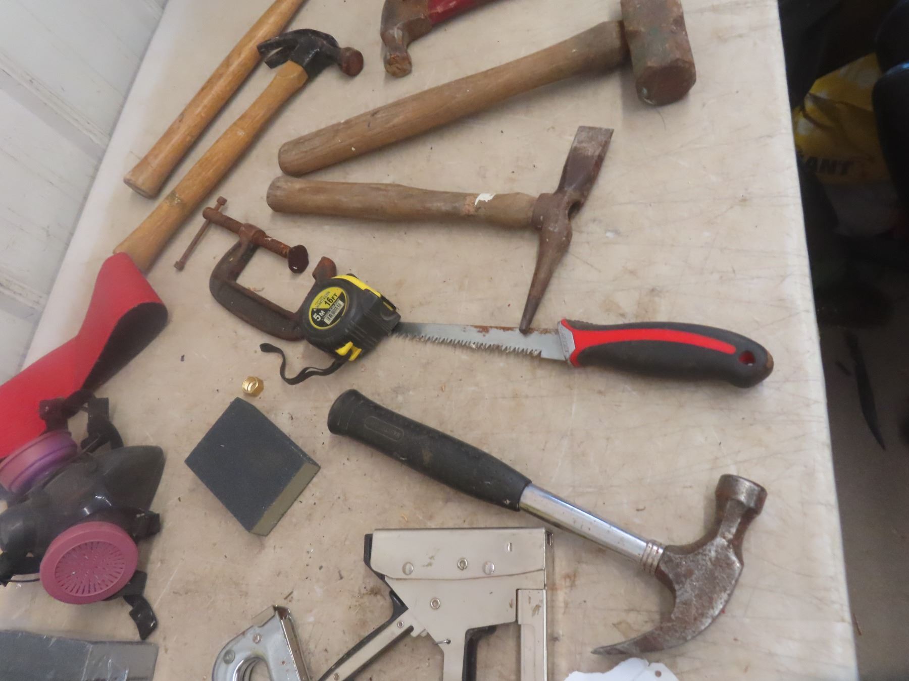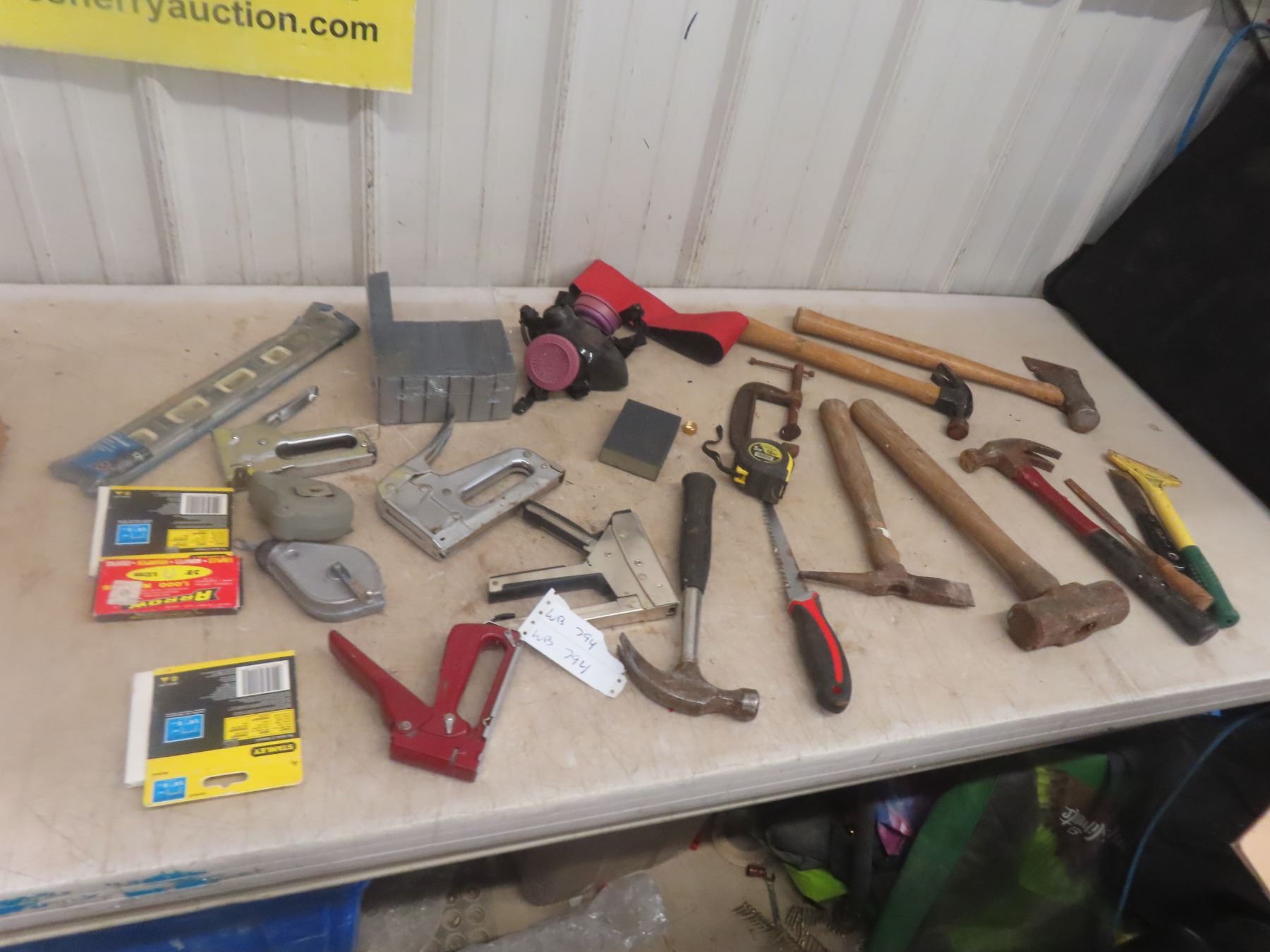 Carpentry Tools, Framing Hammer, Sledge Hammer, Claw Hammer, Staples + Stapler, Level Saw +