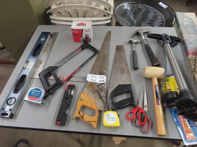 Carpentry Tools; Saw, Level, Hammer, Bike Tire Pump plus more