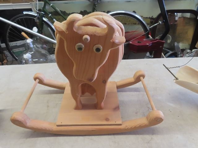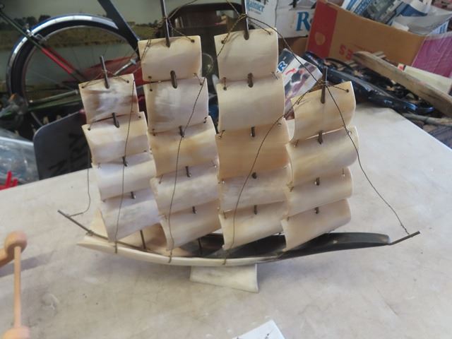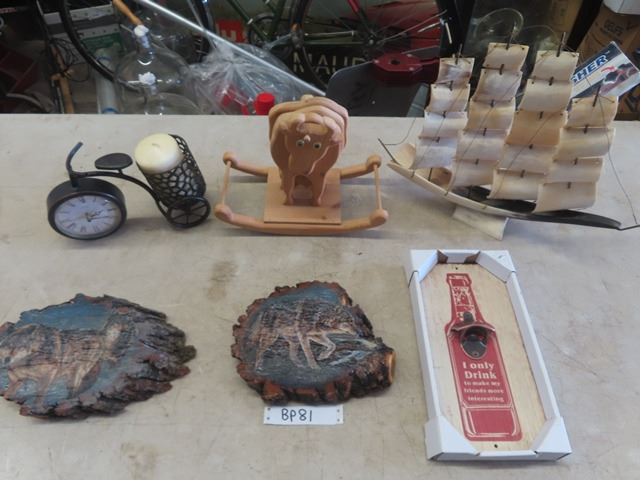 Carved Sailboat, Bottle Opener, 2 Wooden Art Items Clock Candle Holder, Wooden Cow Figure