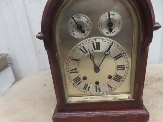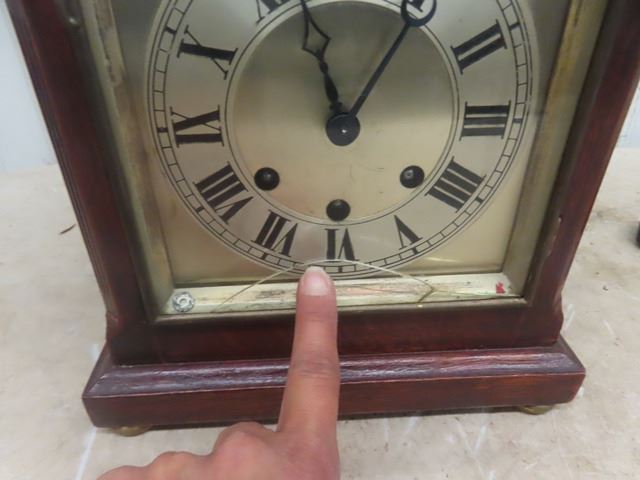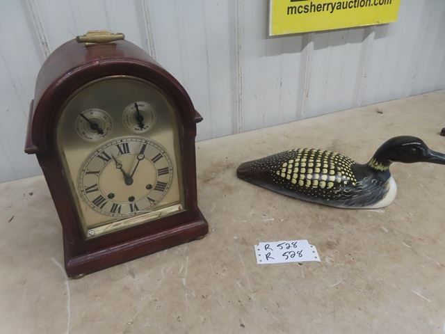 Carved Wooden Loon Wind Up Mantle Clock -crack on glass