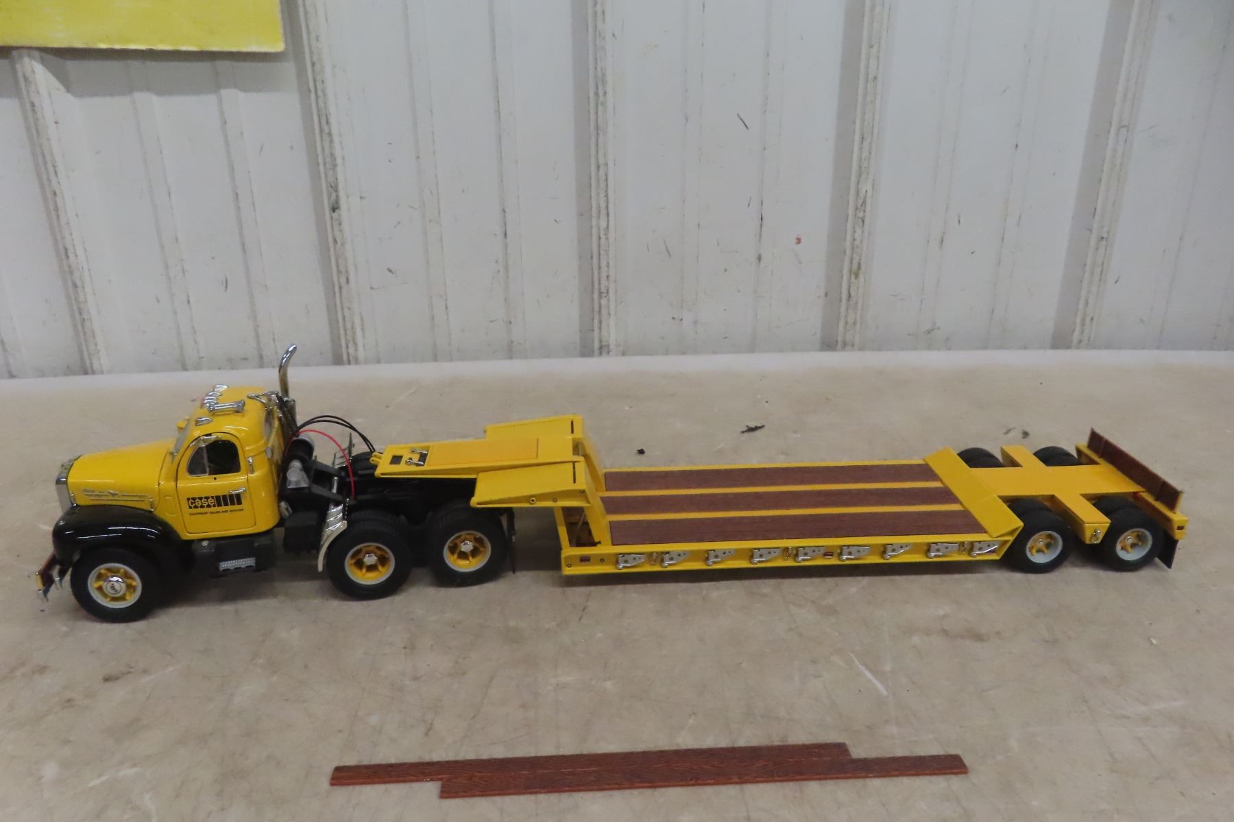 Case Equipment Mack Truck and Low Boy Equipment Hauler Trailer 1:25 Scale, First Gear 24'' Long