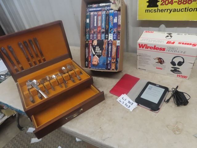 Case with Rogers Flatwear, VHS Movies; James Bond Kobo Reader, Wireless Headphones