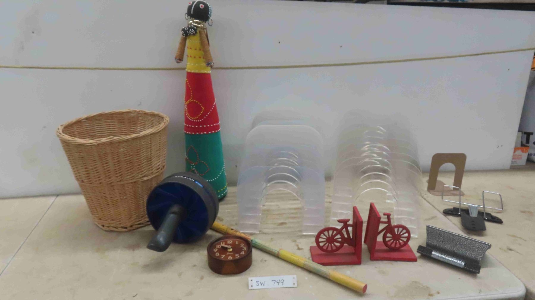 Cast Book Ends , File Holders , AB Carver Ceremonial Doll 24'' T & More