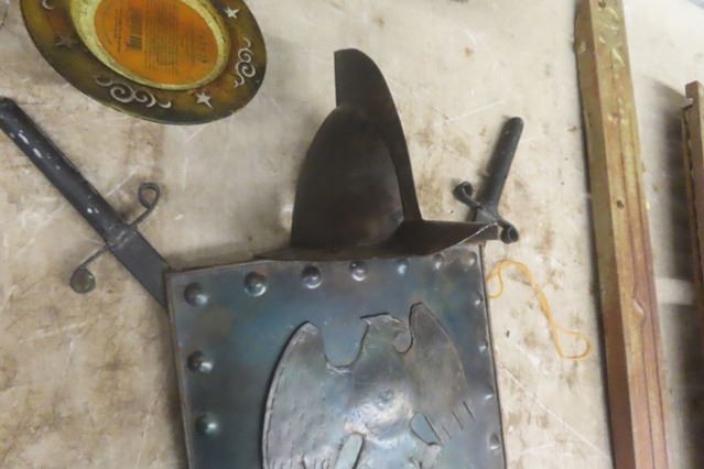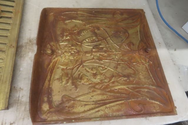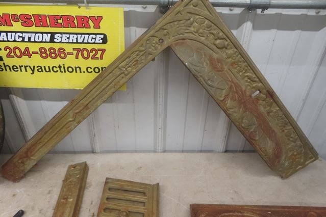Cast Iron Fireplace Surround- in pieces with Metal Wall Art